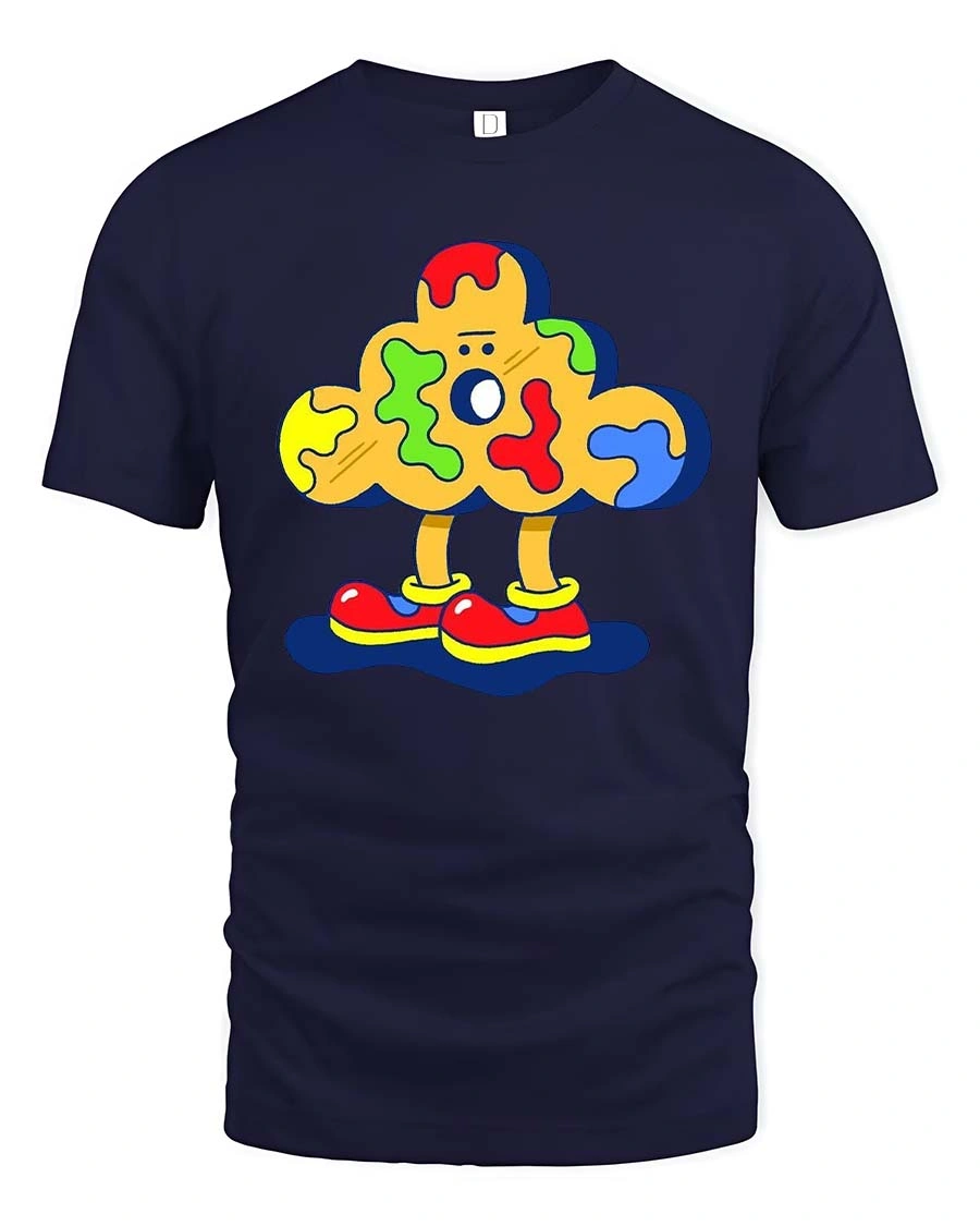 Abstract Blob T Shirt Colorful Cartoon Fun Graphic Art features a bold and playful design that blends modern abstract shapes with a fun cartoon character style.