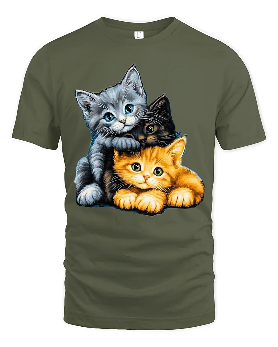 Adorable Three Kittens Cuddle Graphic T Shirt captures the heart melting charm of playful baby cats in one delightful design. Featuring three sweet kittens snuggled closely together with expressive eyes and soft detailed fur, this artwork radiates warmth and affection. The gentle colors and lifelike textures create a cozy and comforting visual that cat lovers instantly appreciate.