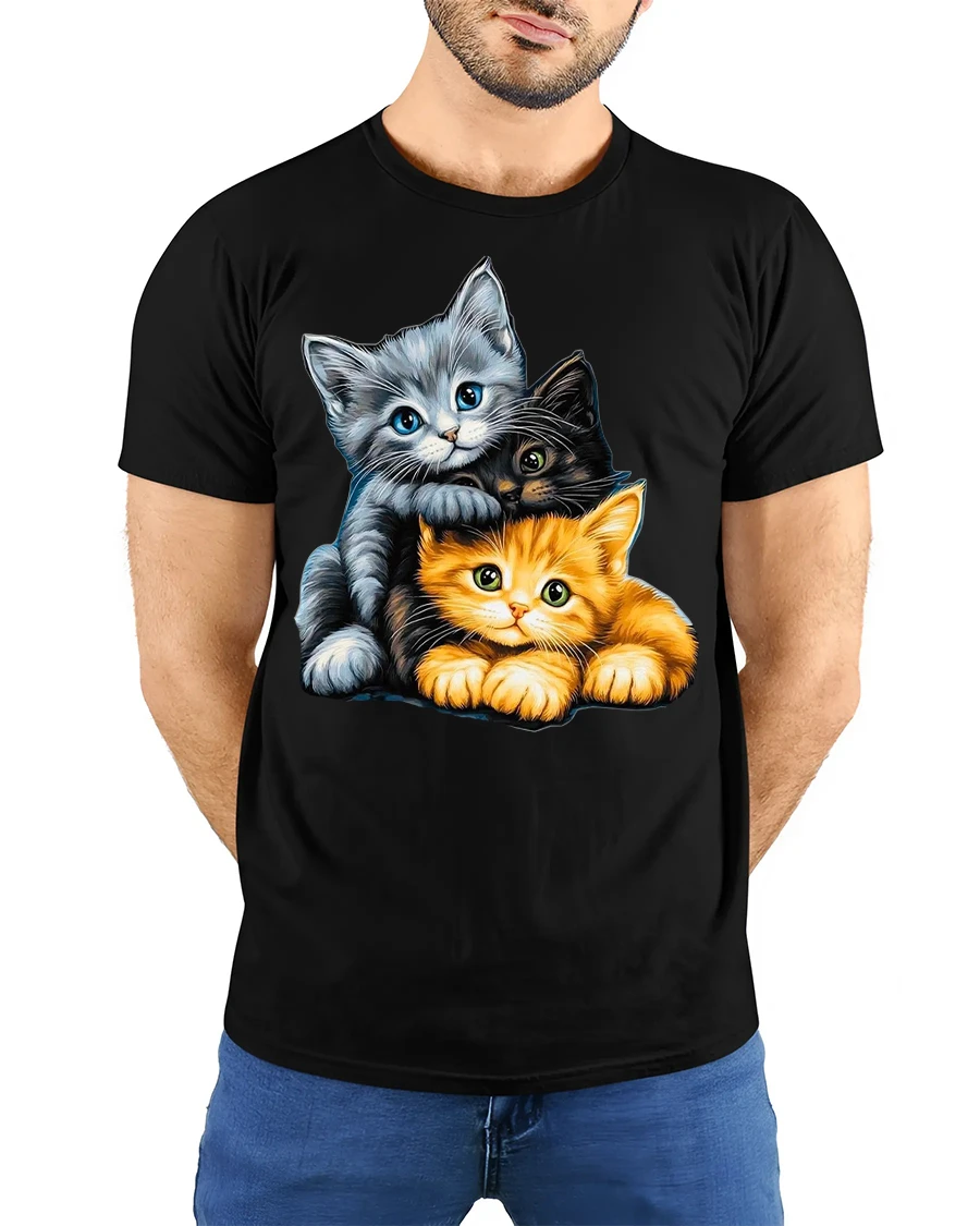 Adorable Three Kittens Cuddle Graphic T Shirt is perfect for anyone who loves cats and heartwarming designs. This charming illustration brings joy and sweetness into your wardrobe, turning a simple outfit into an expressive statement filled with love and playful feline spirit.