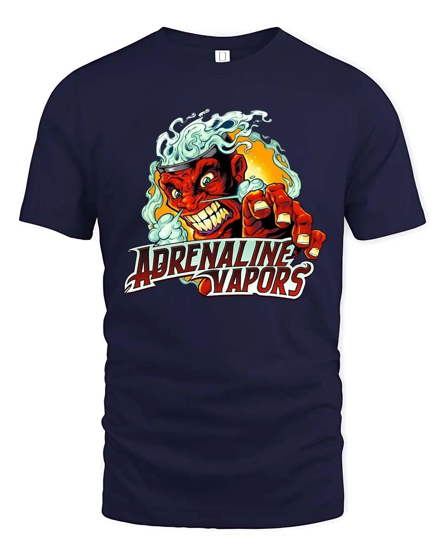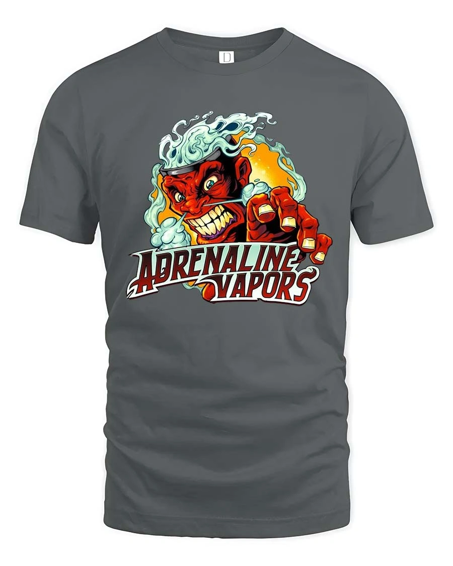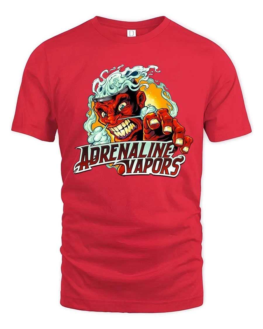 Fuel your style with this Adrenaline Vapors Devil T Shirt featuring a fierce red hot character bursting through clouds of smoke with high speed energy. This adrenaline vapors t shirt captures the raw thrill of racing culture with bold lines, fiery tones, and an aggressive retro vibe that demands attention. The intense expression and dynamic artwork deliver pure horsepower attitude in graphic form.