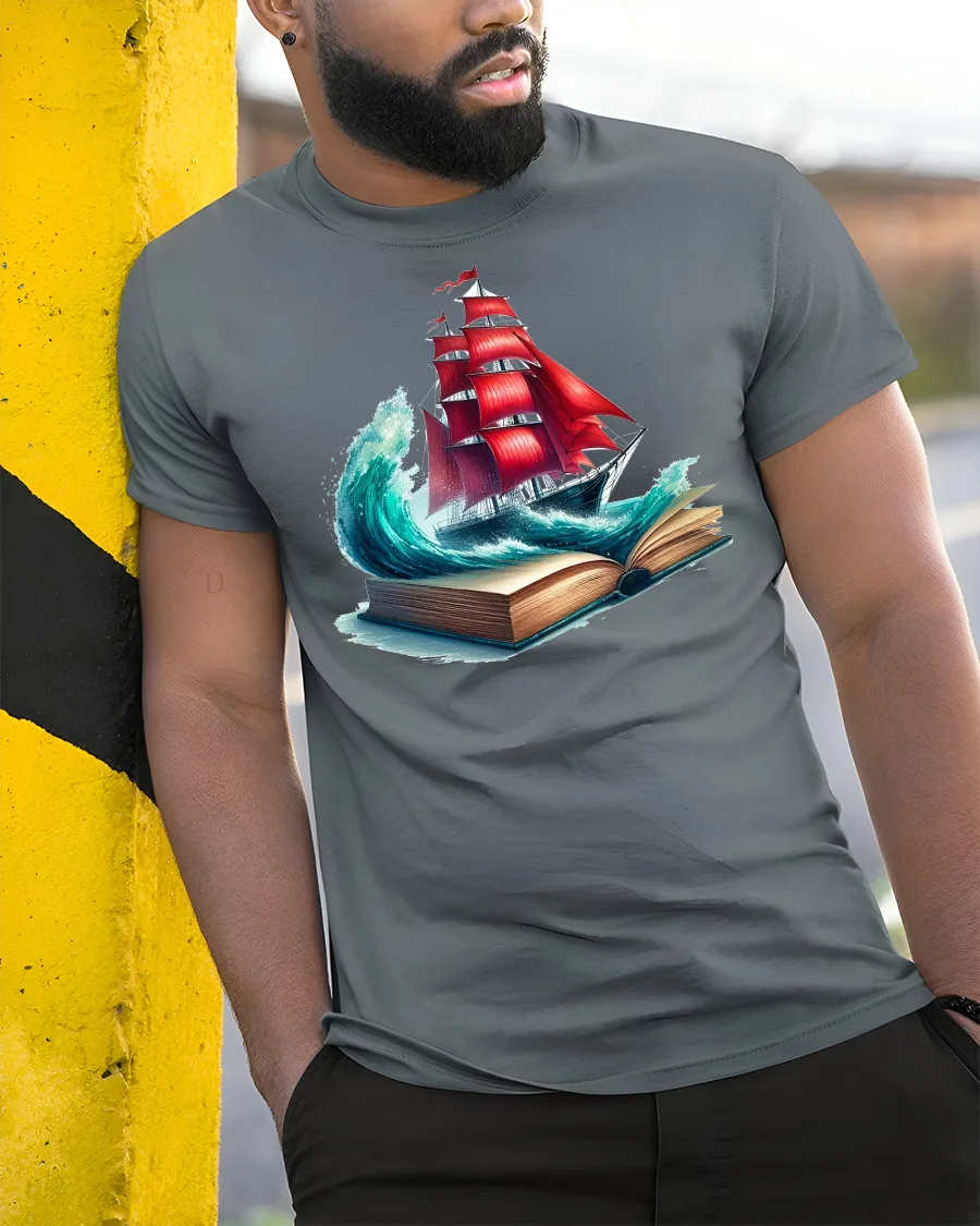 Made from soft, breathable cotton, this sailing ship t-shirt is as comfortable as it is stylish. The striking artwork captures the essence of adventure, making it a great choice for bookworms, nautical enthusiasts, and anyone who loves bold graphic tees with meaning. Wear it to casual outings, reading clubs, or just relaxing by the shore.