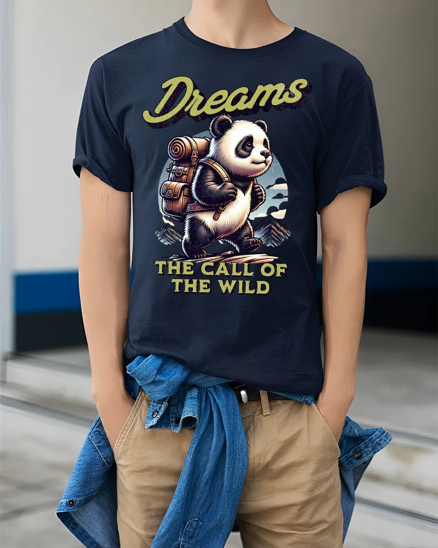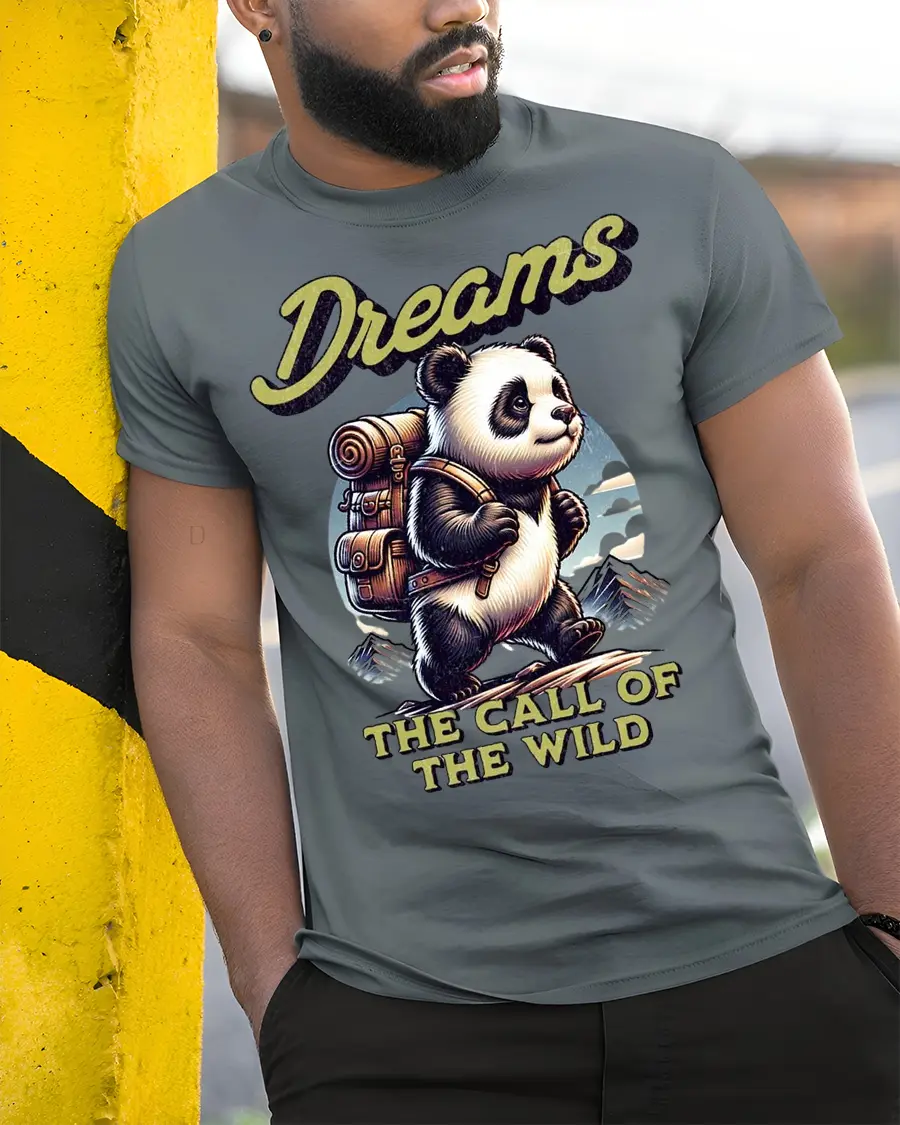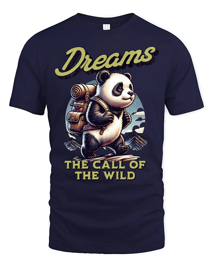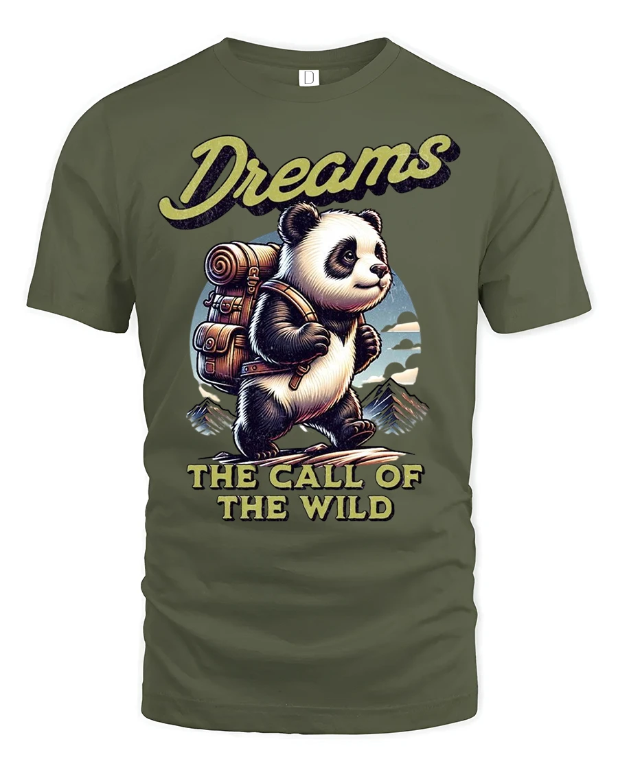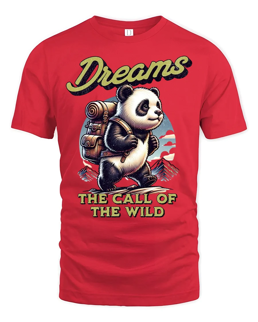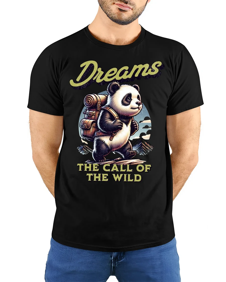 Step into your next journey with confidence and charm wearing the Adventure Panda Dreams T-Shirt – The Call of The Wild.