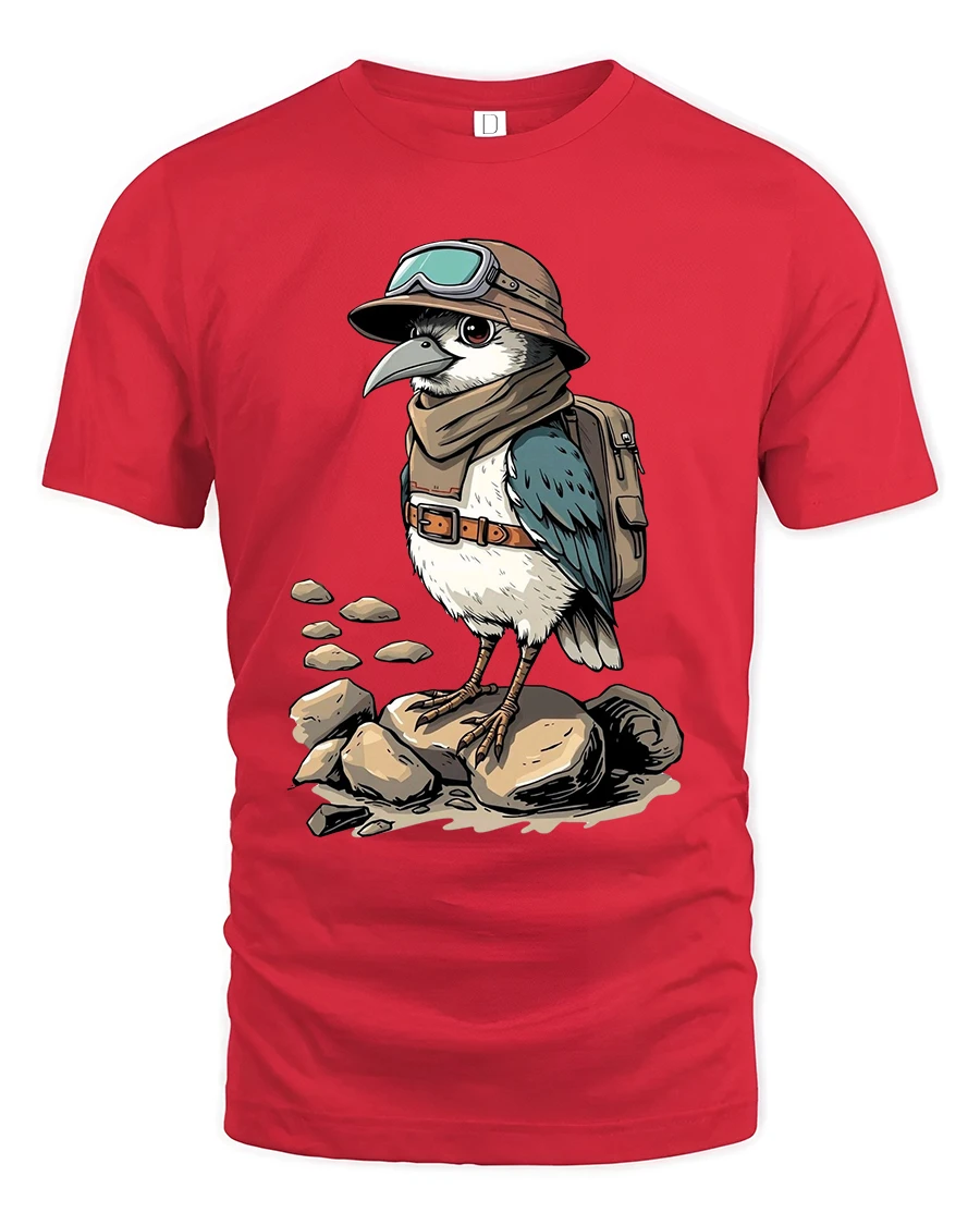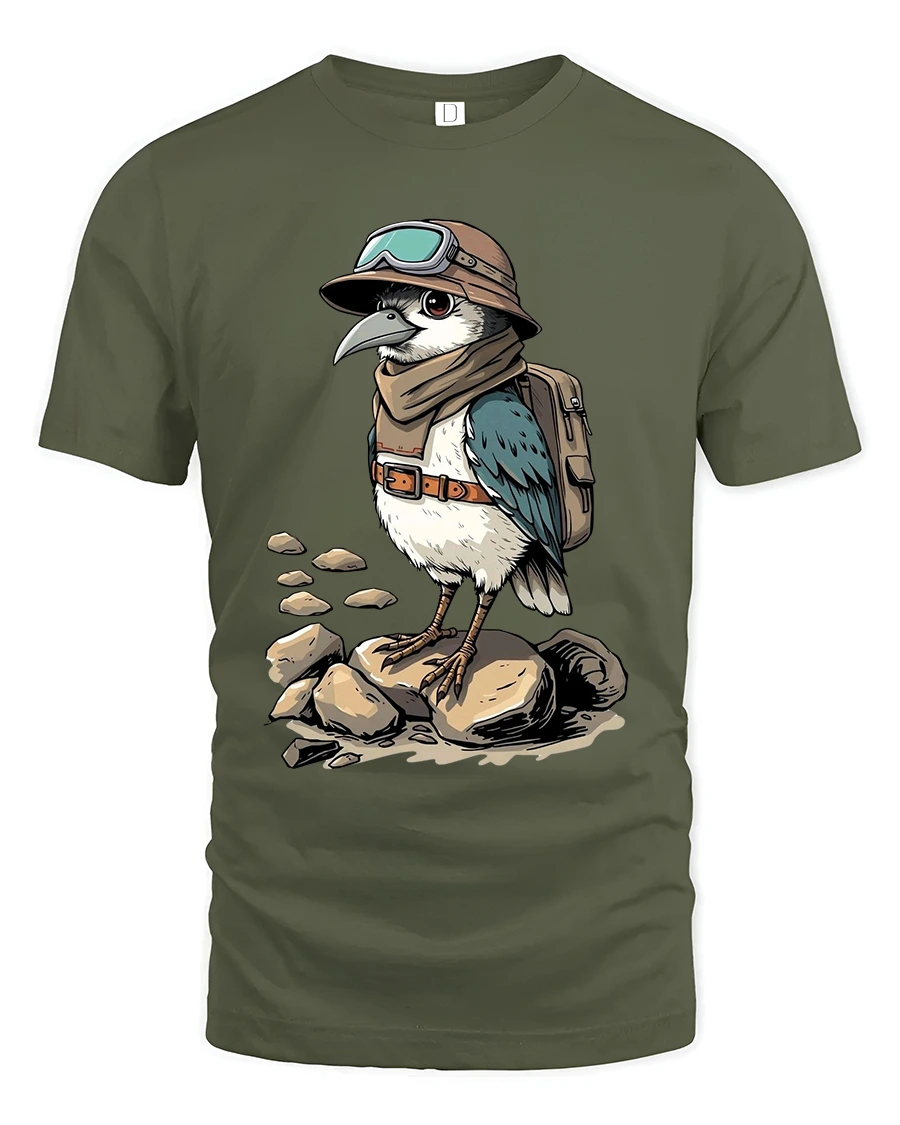 The Adventurous Explorer Bird Cartoon Vintage Travel Graphic T Shirt brings curiosity charm and adventure together in one unique design.