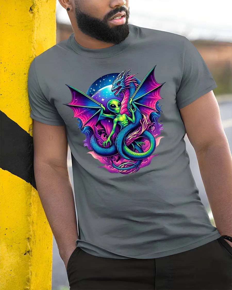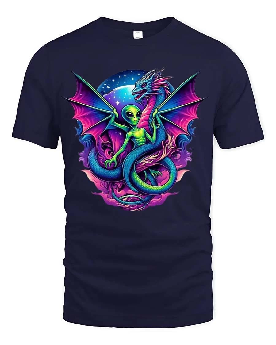 Alien Dragon Fusion Graphic T Shirt Cosmic Fantasy Art Style delivers a bold and imaginative design inspired by sci fi and fantasy worlds.