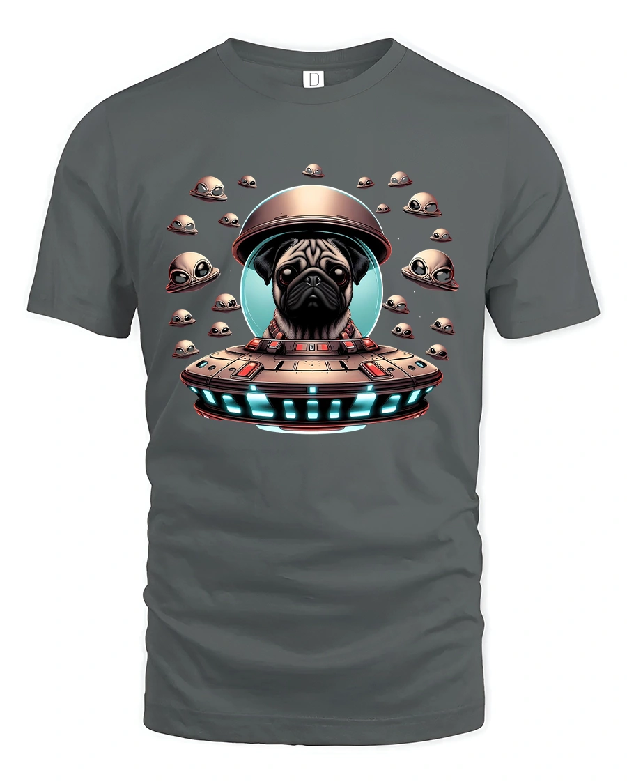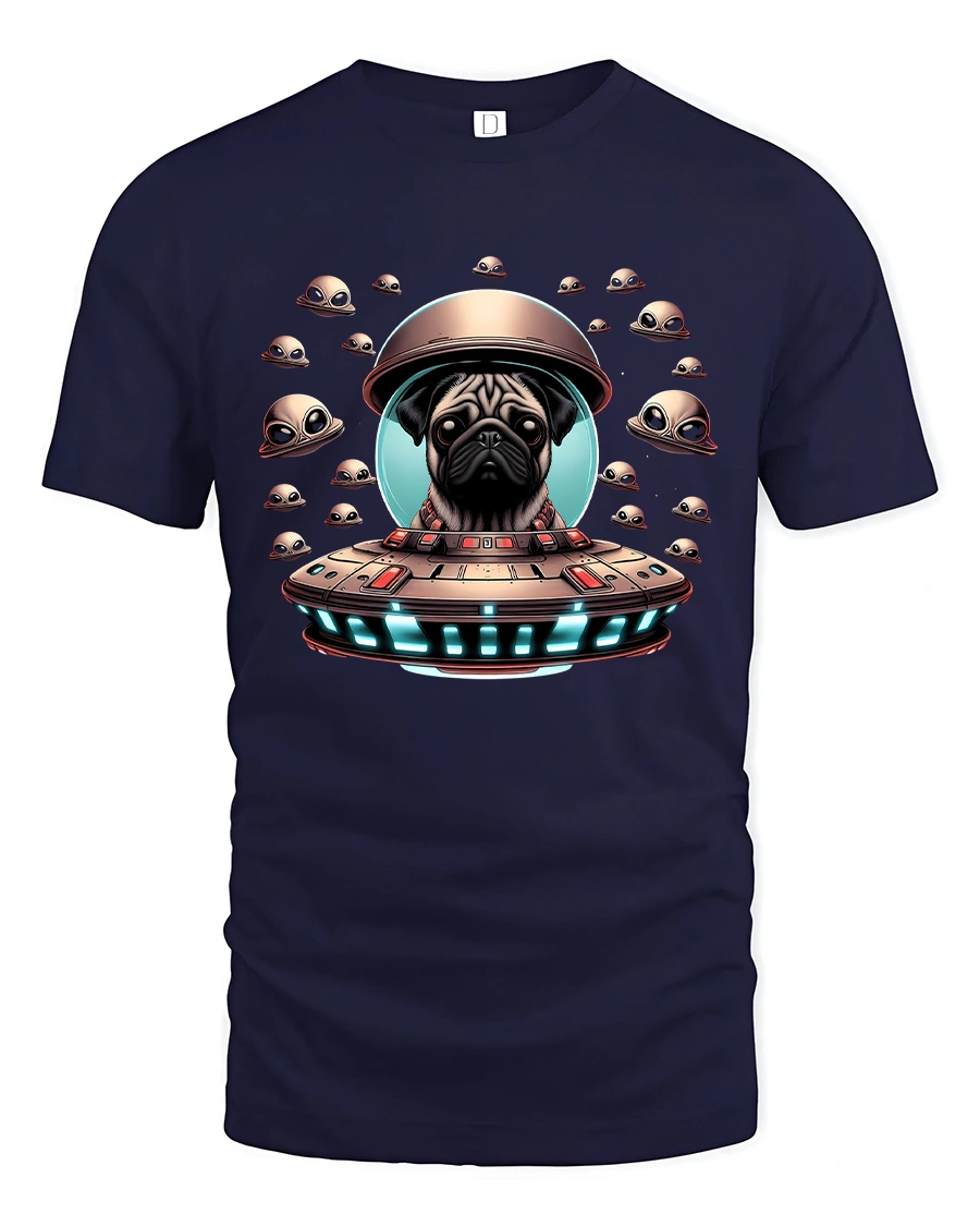 Alien Pug UFO Space Adventure Cute Sci Fi Graphic Tee brings humor imagination and cosmic charm into one bold design.