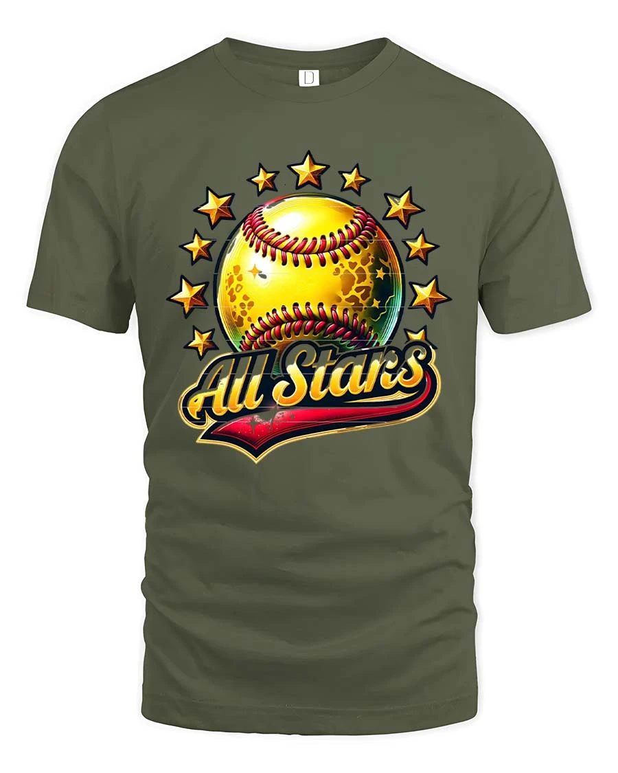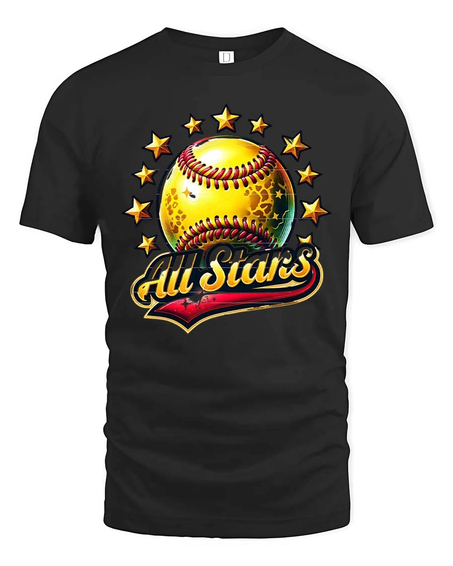 All Stars Softball Graphic T Shirt Golden Ball Sports Tee delivers a bold and energetic sports inspired design.