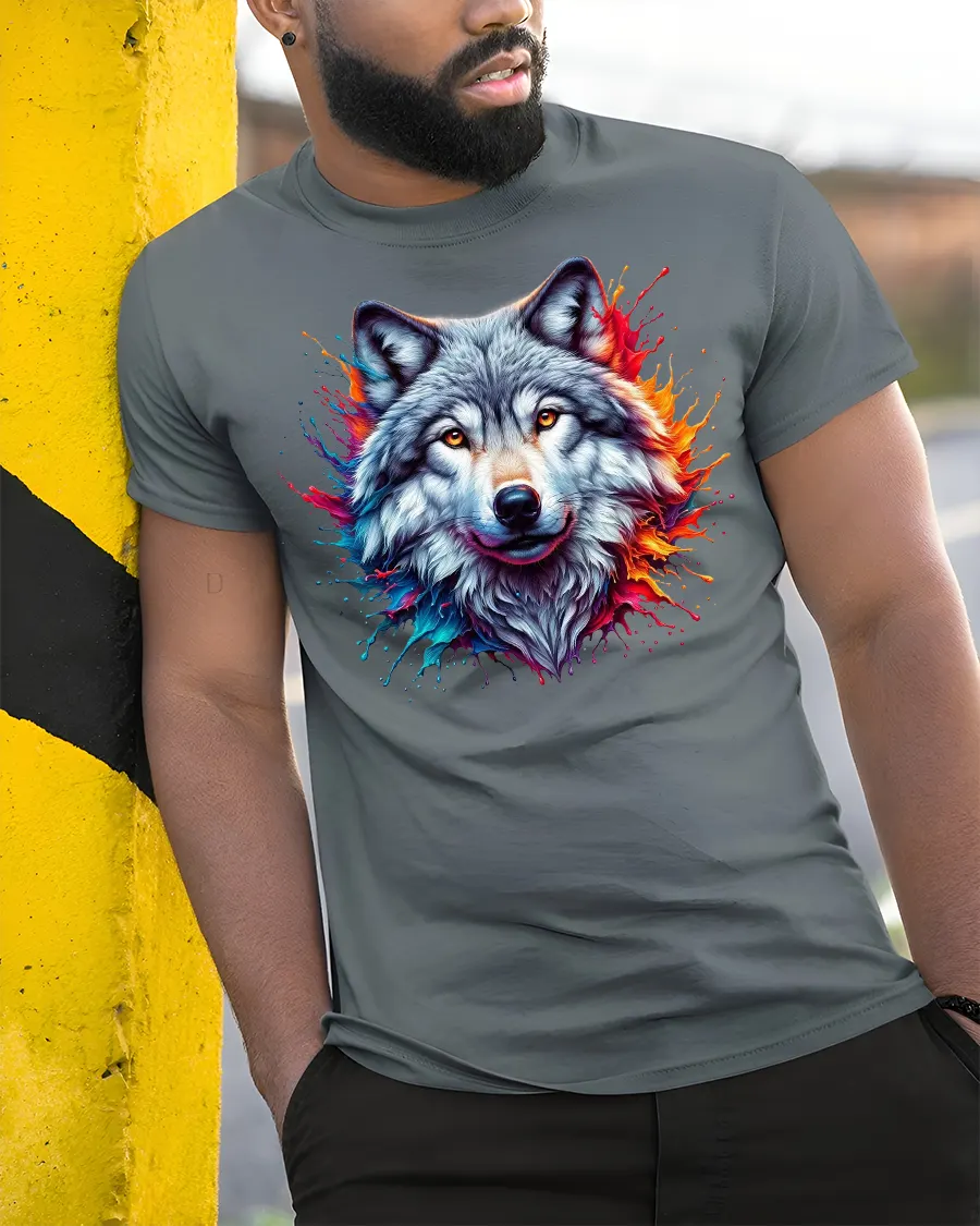 Unleash your inner strength with the Alpha Wolf Graphic Tee. Featuring a stunning wolf portrait with bold paint splash effects, this tee is perfect for anyone who loves wildlife, tribal art, or powerful animal designs. The vivid colors make the wolf come alive, adding energy and character to your everyday look.