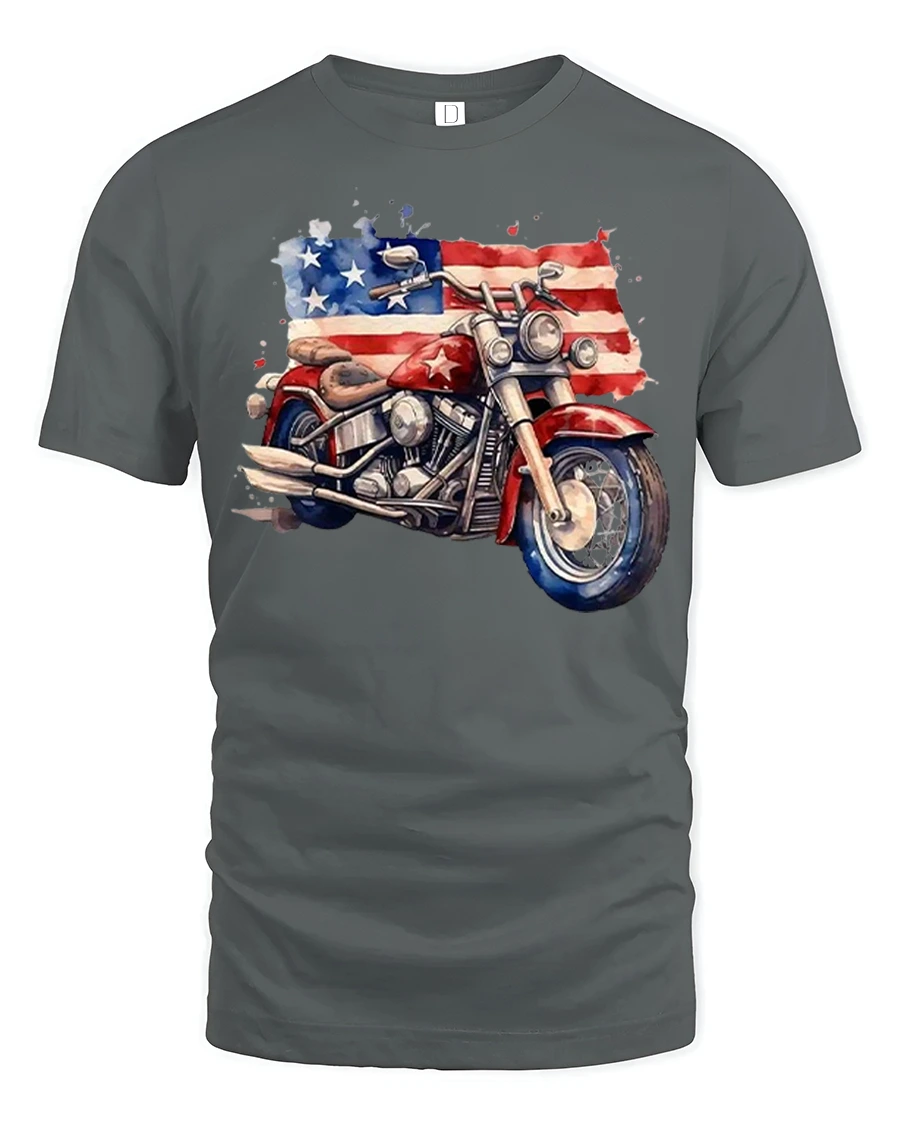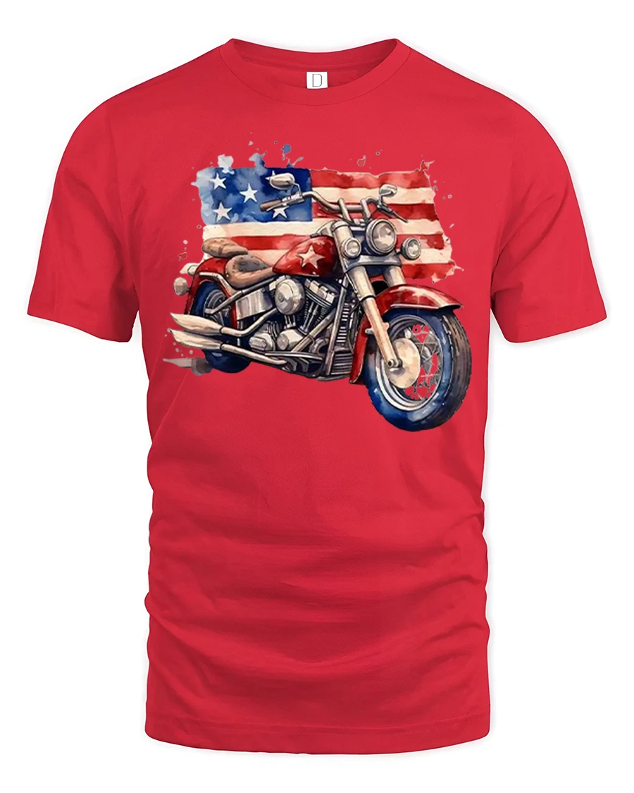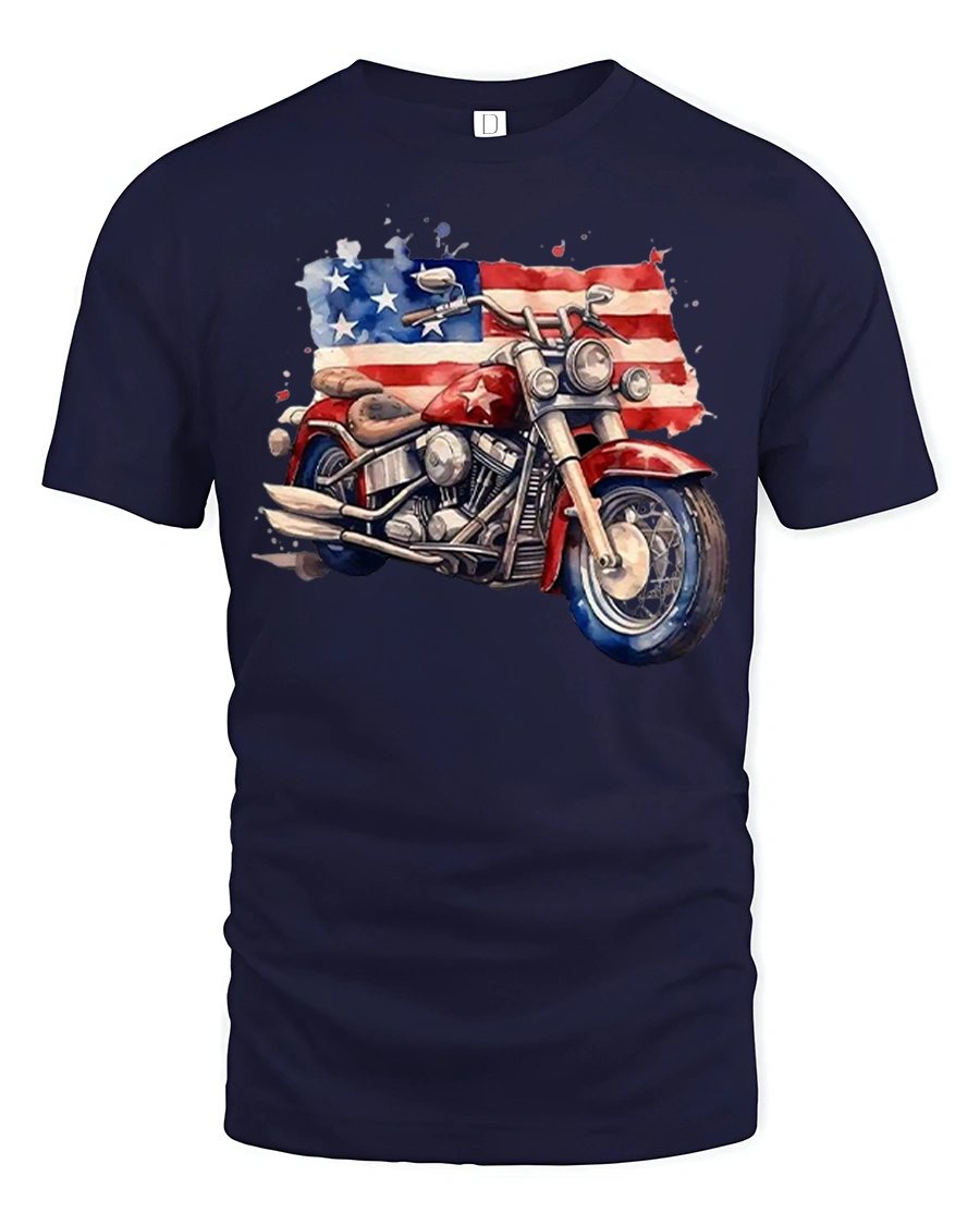 American Flag Motorcycle Illustration Graphic Tshirt Freedom Ride showcases a bold motorcycle design layered with the iconic stars and stripes.