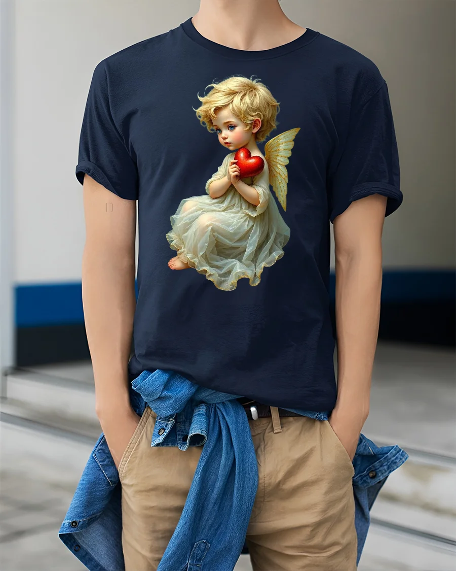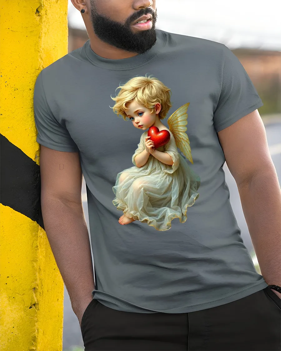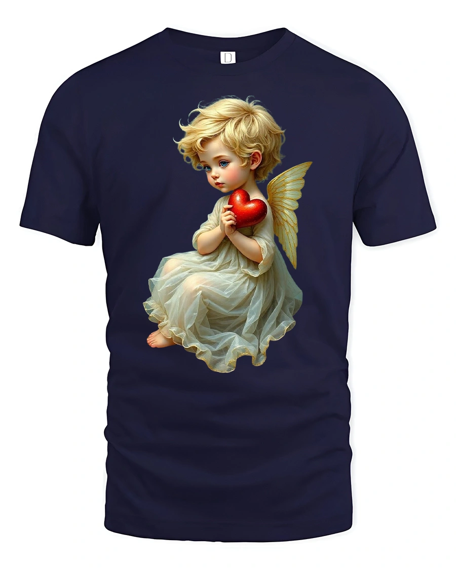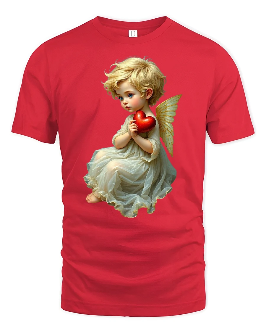 Angel Baby Holding Red Heart Heaven Love T-Shirt brings warmth, innocence, and serenity to your wardrobe. The beautiful artwork features a sweet little angel with golden wings gently holding a glowing red heart — a perfect symbol of love, purity, and hope.