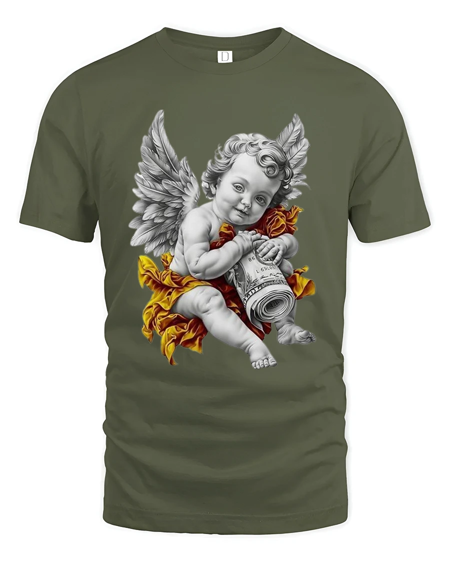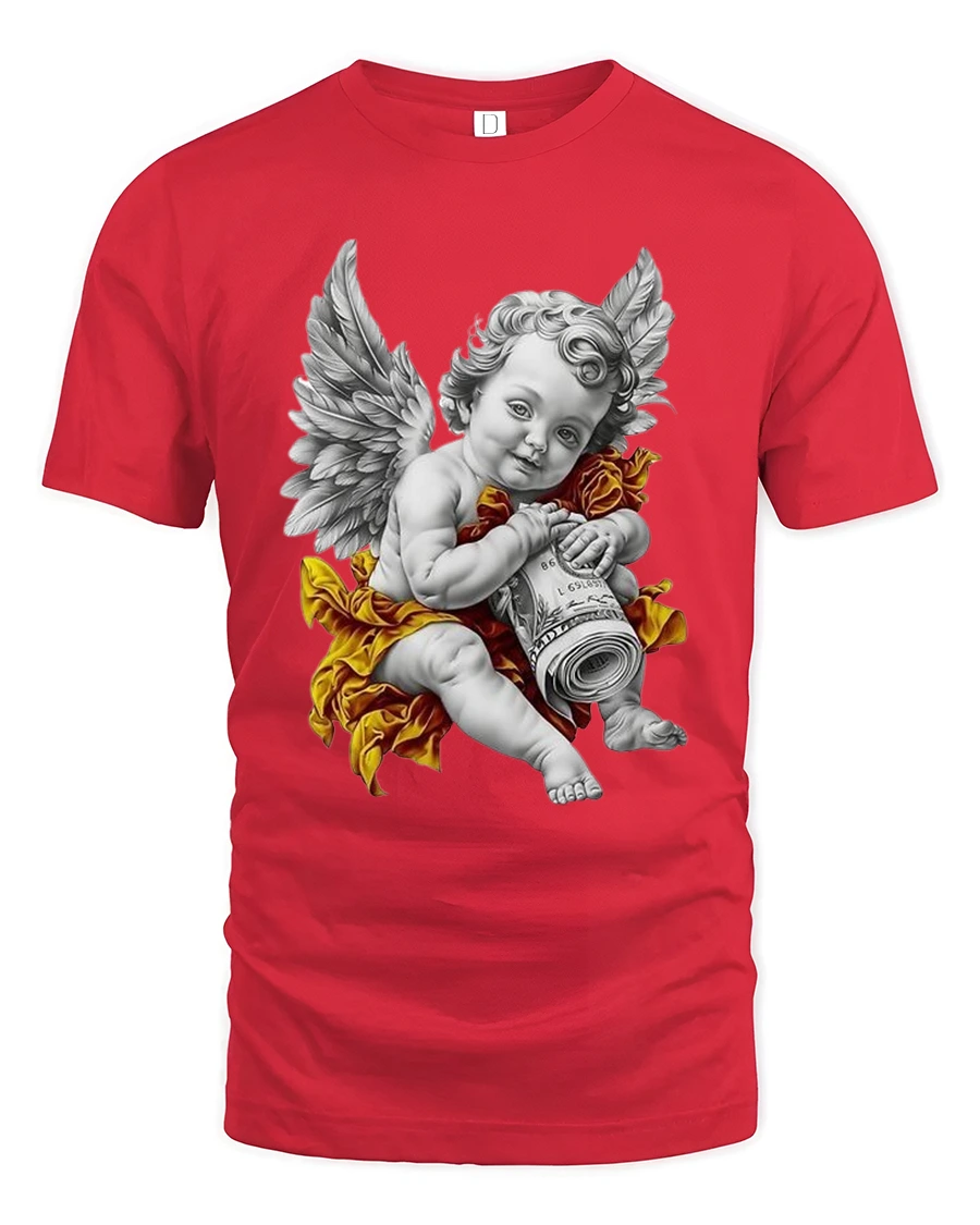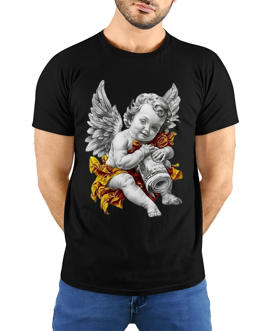 The Angel Cherub Money Art Luxury Vintage Style Graphic T Shirt blends classical art inspiration with modern confidence.