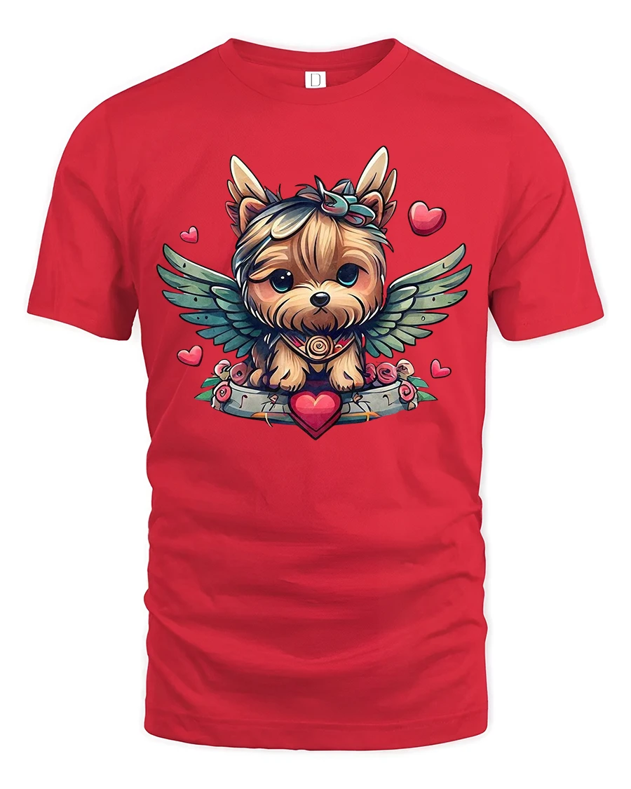 Featuring an adorable little dog with angel wings, surrounded by hearts and flowers, this tee captures the spirit of unconditional love that every dog brings into our lives.