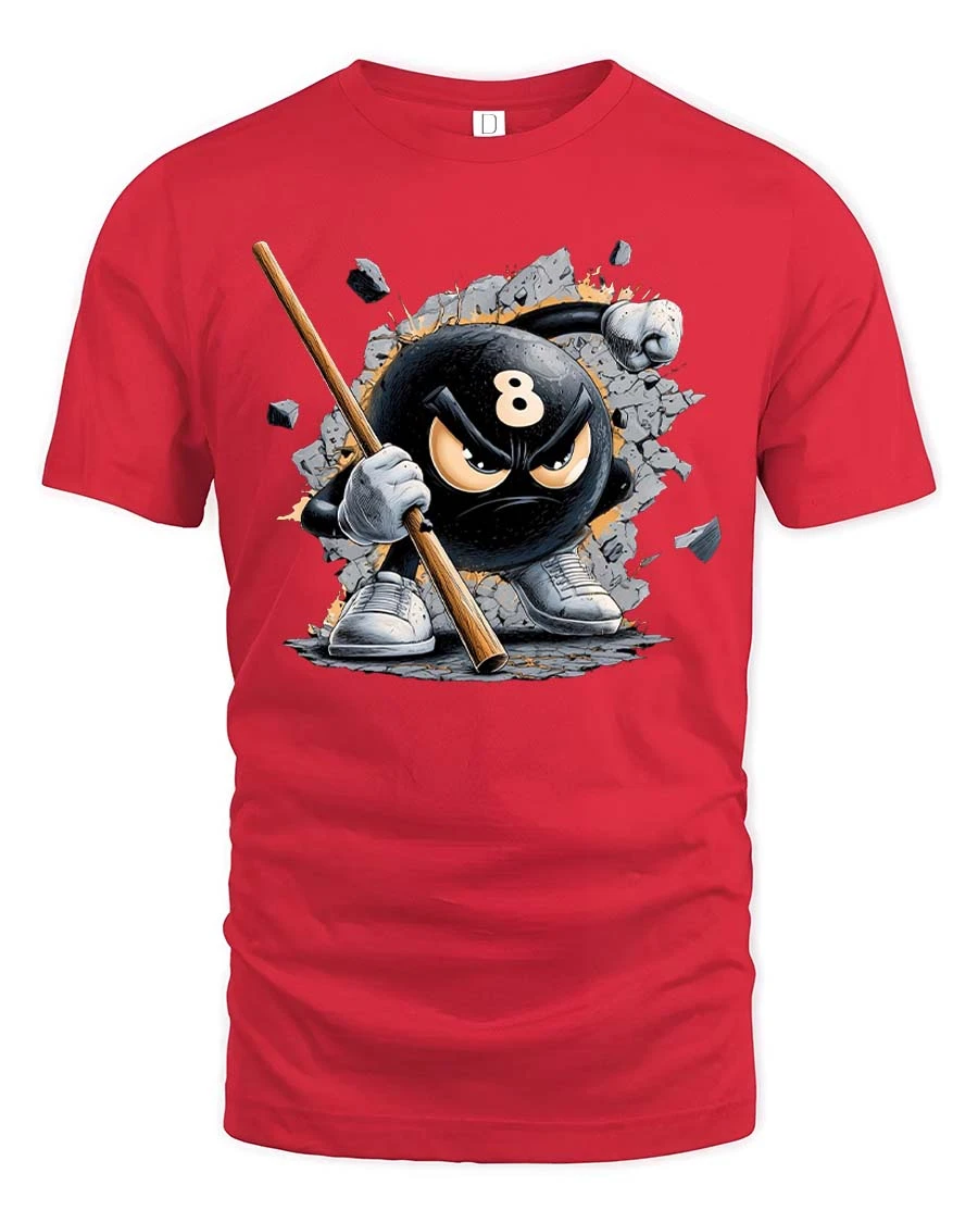 Angry 8 Ball Smash Graphic T-Shirt Pool Player Attitude Tee - red t-shirt on white background