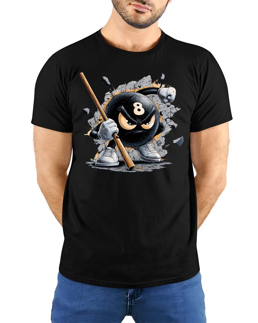Angry 8 Ball Smash Graphic T-Shirt Pool Player Attitude Tee features a bold and intense design inspired by the competitive spirit of billiards.