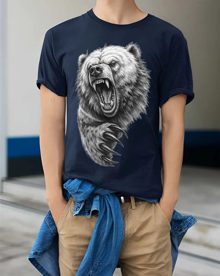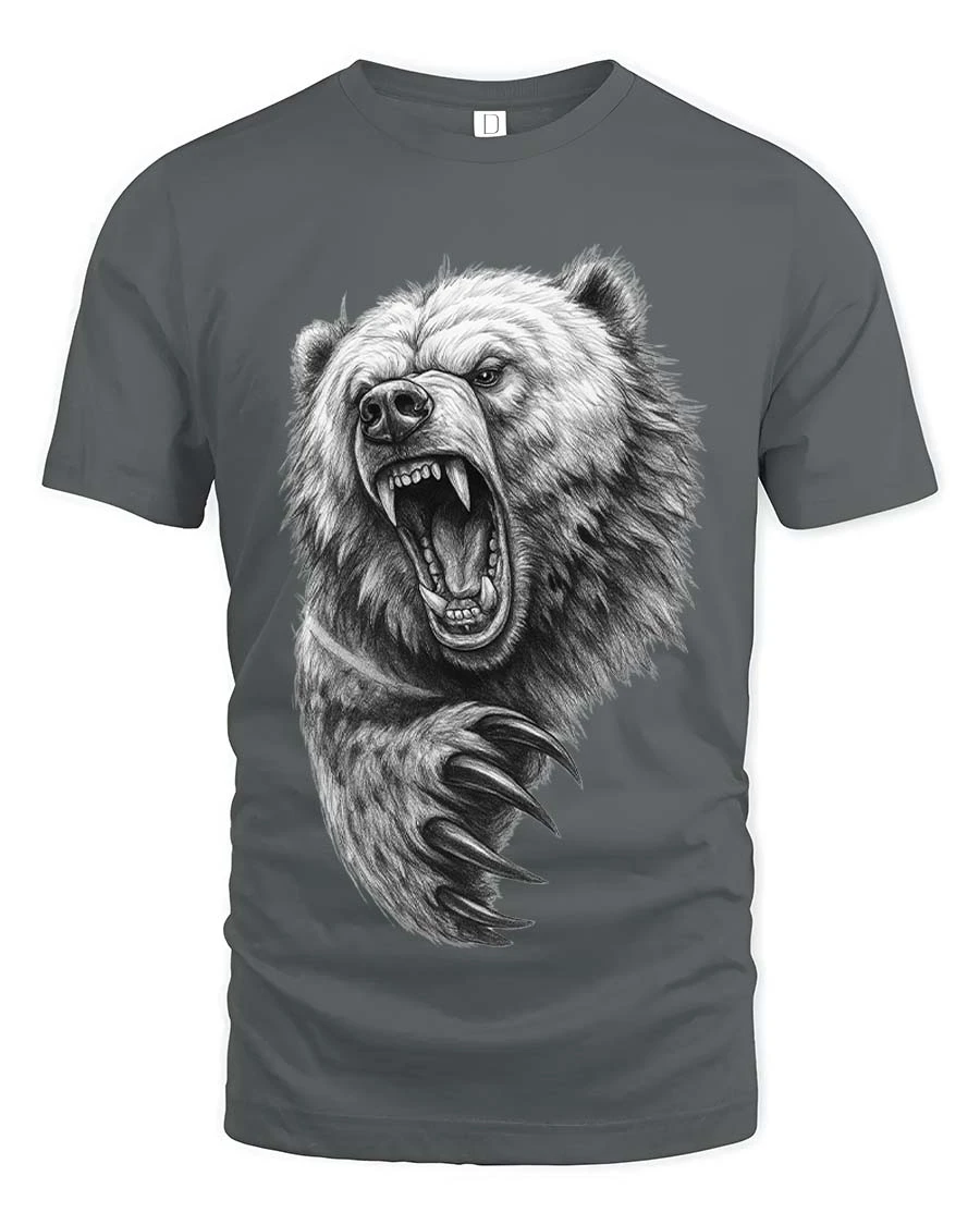 Angry Bear Roar Claw Attack Realistic Drawing T Shirt Graphic Tee delivers a bold and powerful statement with its intense wildlife design.