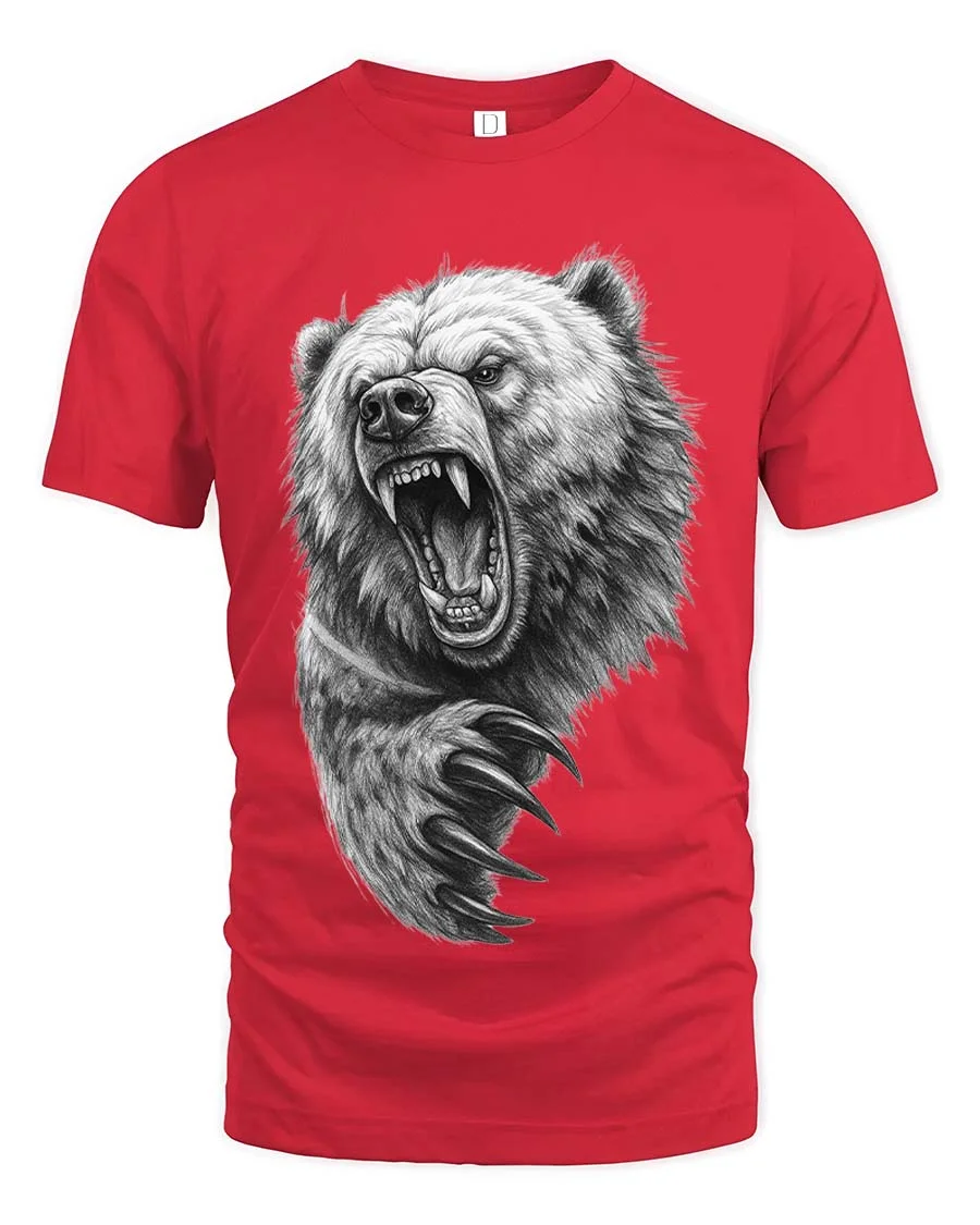 Angry Bear Roar Claw Attack Realistic Drawing T Shirt Graphic Tee - red t-shirt on white background