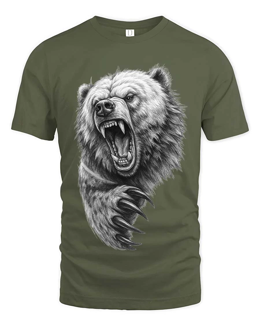 Angry Bear Roar Claw Attack Realistic Drawing T Shirt Graphic Tee - military green t-shirt on white background