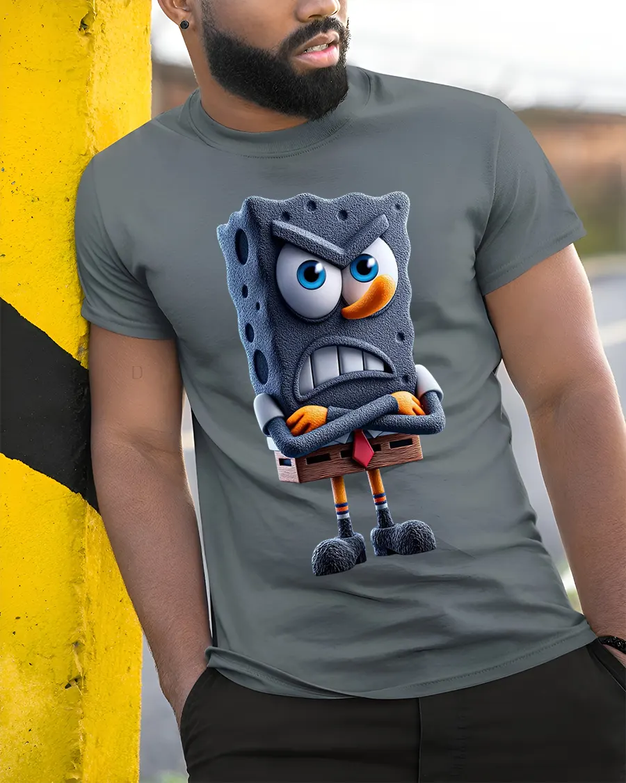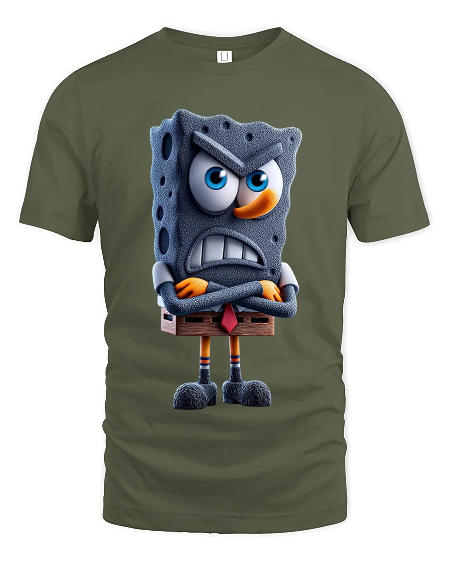 The Angry Cartoon Sponge Character Art Tee Funny Grumpy Mood Style delivers humor personality and bold expression in a playful illustrated design.