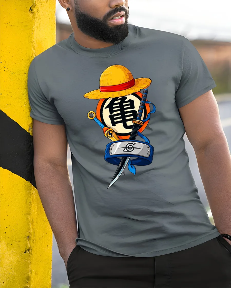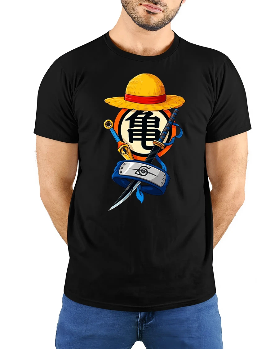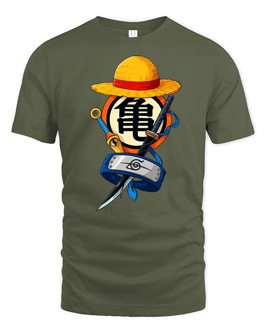 Anime Ninja Pirate Fusion Symbol Graphic Tshirt Bold Style features a powerful illustrated emblem that blends iconic anime inspired elements into one striking design.