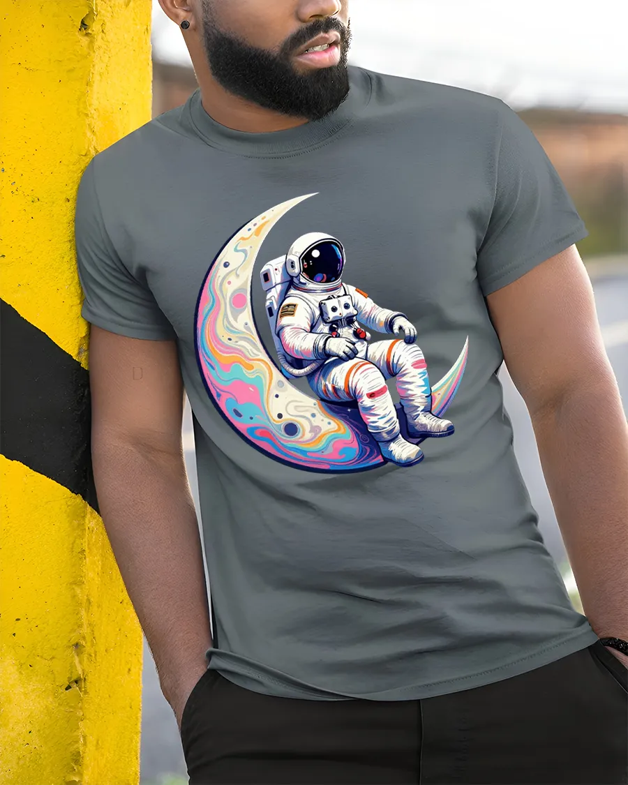 Astronaut Sitting On Moon T Shirt Cosmic Dream Art transforms everyday fashion into a celebration of exploration and creativity. This unique design adds personality and celestial charm to your wardrobe, making it a standout piece that sparks imagination and conversation.