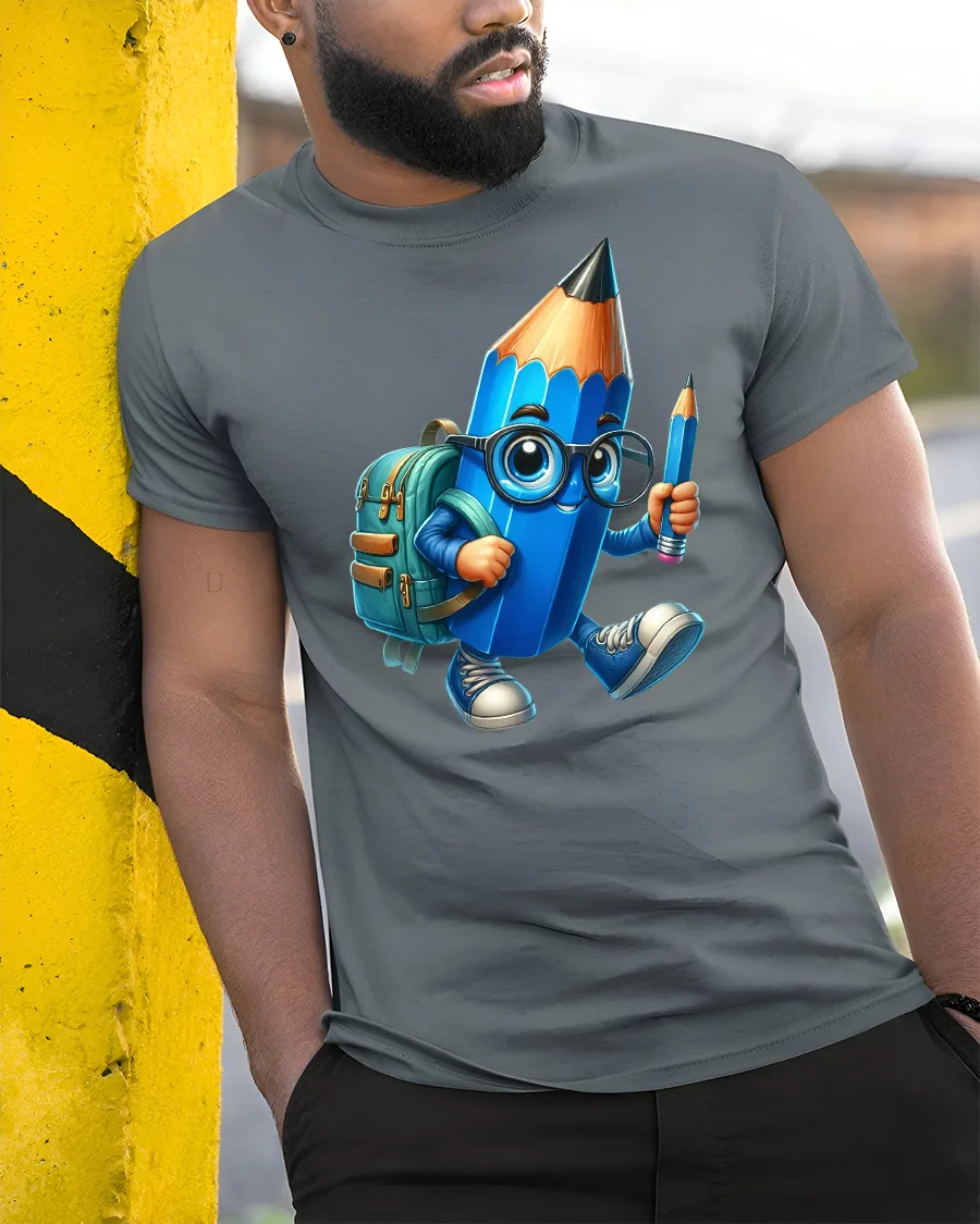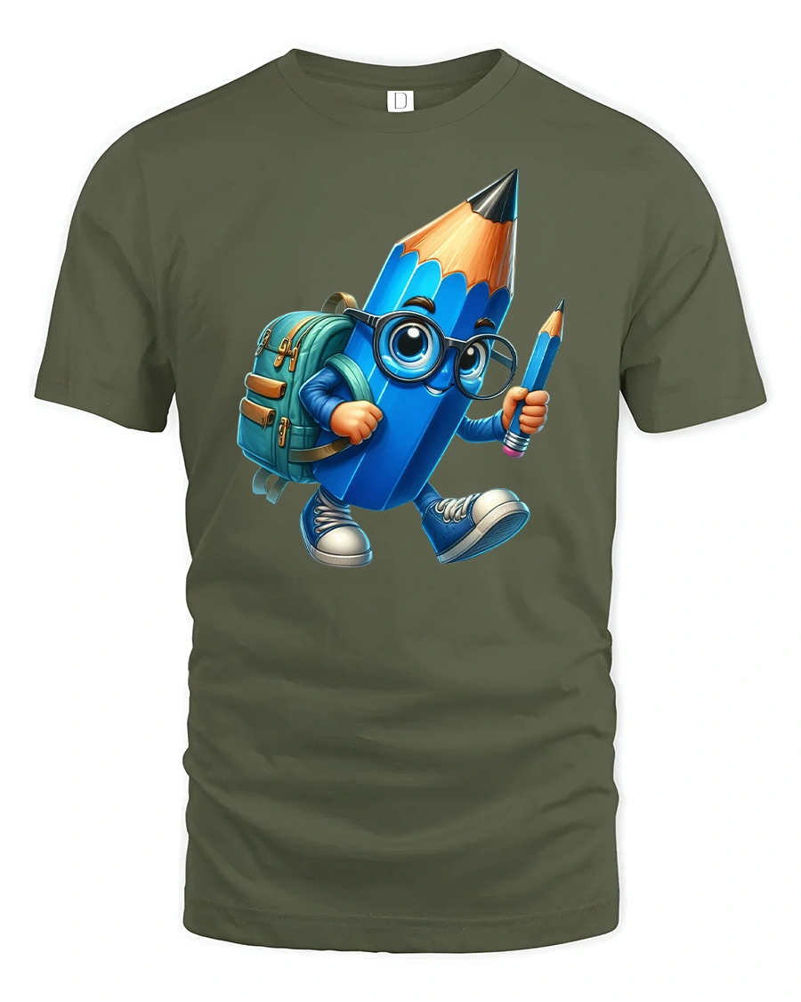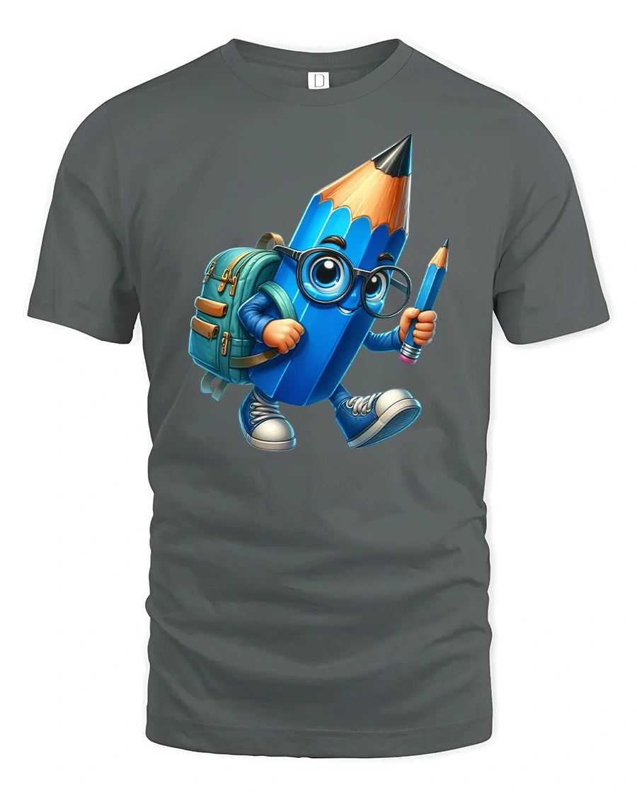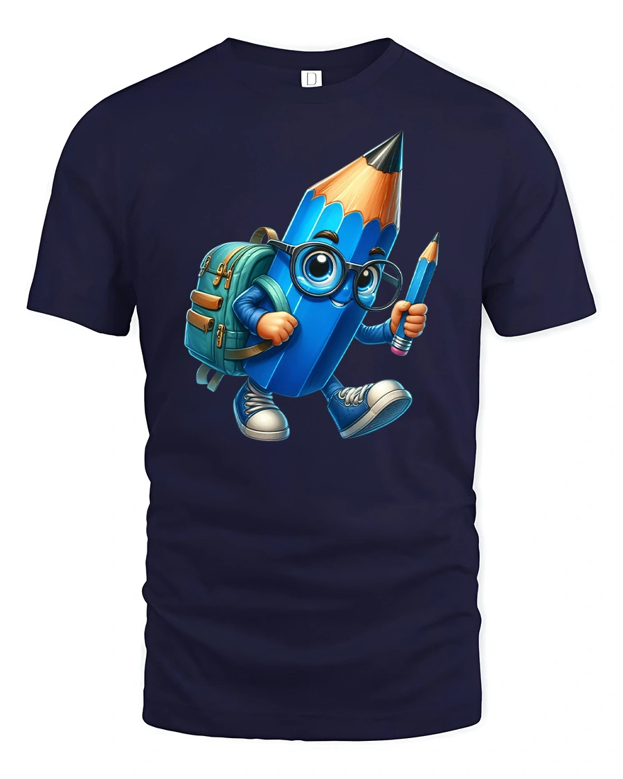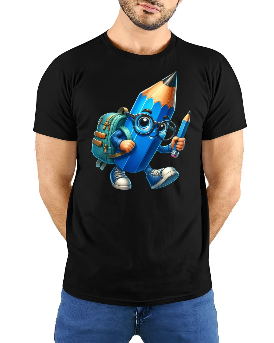 Get ready for class in style with the Back to School Pencil Buddy Cartoon Graphic T-Shirt. Featuring an adorable walking pencil character with glasses, sneakers, and a backpack, this design brings a playful twist to any outfit. Perfect for students, teachers, or anyone who loves quirky school-themed fashion, this tee will put a smile on everyone’s face.