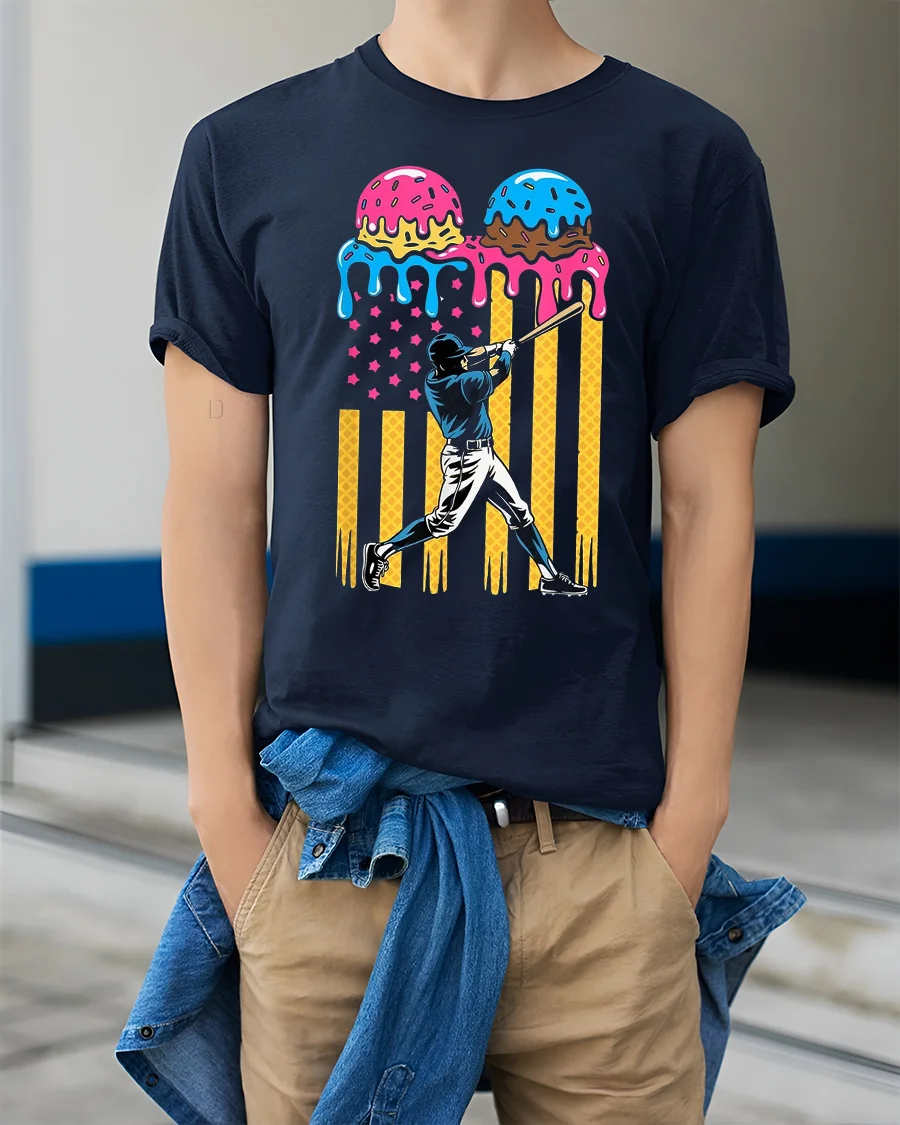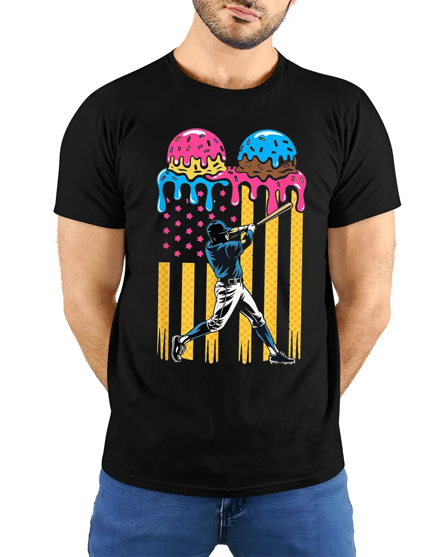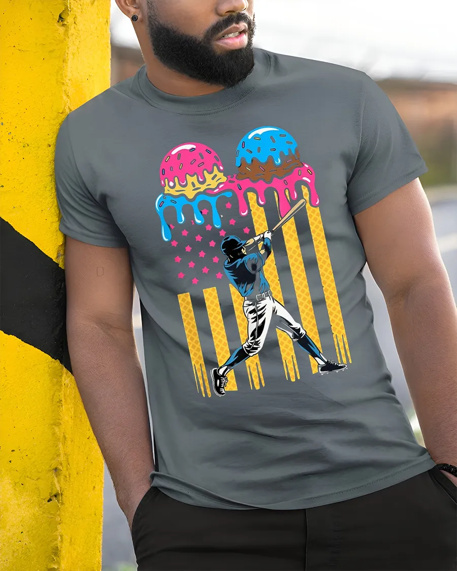Baseball Swing Meets Ice Cream Graphic T Shirt With Fun Pop Art delivers a playful mix of sports energy and sweet creativity.
