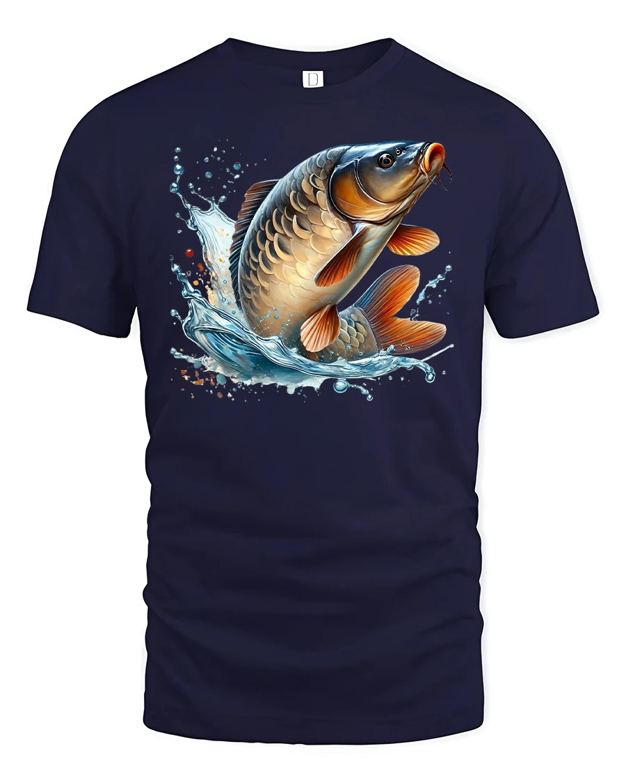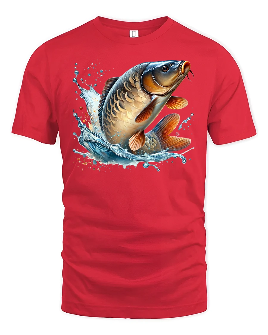 Celebrate your love for fishing with the Big Catch Jumping Carp Fishing Graphic T-Shirt. Featuring a bold and realistic design of a carp leaping out of the water with vibrant detail and splashing waves, this tee is perfect for anglers, fishing lovers, and outdoor enthusiasts.