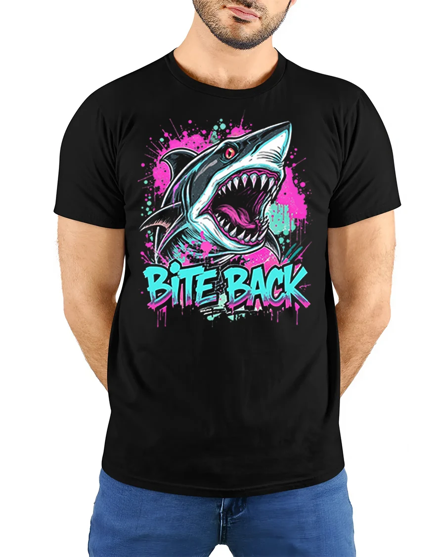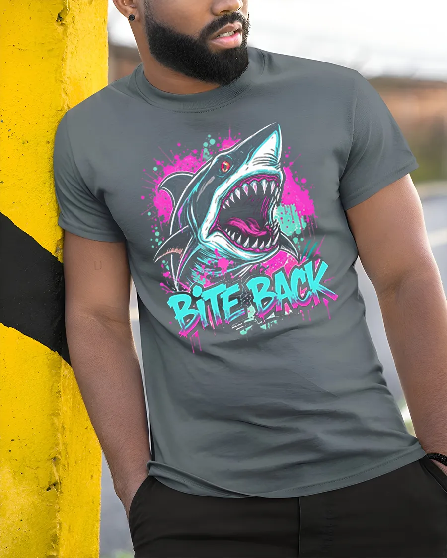 The Bite Back Shark Tee With Neon Graffiti Art And Fierce Attitude brings bold energy and fearless style into one powerful design.
