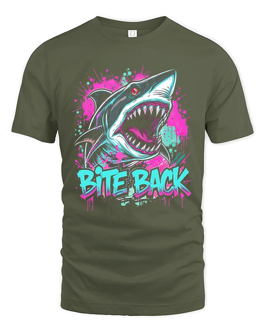 Whether you’re wearing it for casual outings, beach days, skate sessions, or simply to show off your love for sharks, the Bite Back Shark Tee with Neon Graffiti Style Artwork delivers the perfect blend of attitude and comfort. The strong “Bite Back” message adds motivational flair, making this tee ideal for people who appreciate empowering themes and bold visuals in their wardrobe.