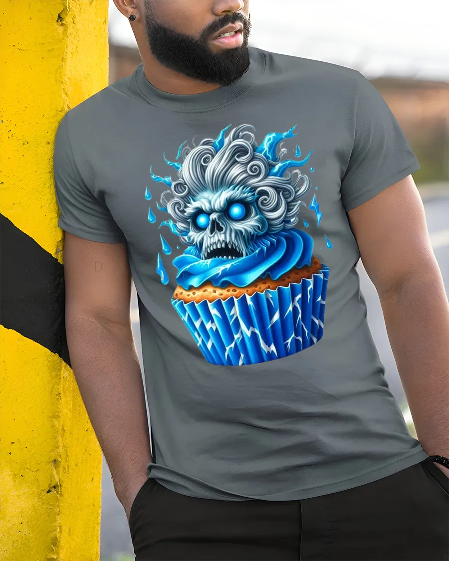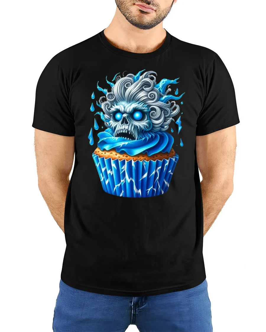 Crafted from premium soft cotton, this skull cupcake t-shirt is made for comfort and lasting wear. The high-definition print captures every eerie detail and electric blue tone, making it a standout piece for parties, casual outings, or October nights. It’s perfect for horror fans, food lovers with a dark sense of humor, or anyone looking for a one-of-a-kind statement shirt.