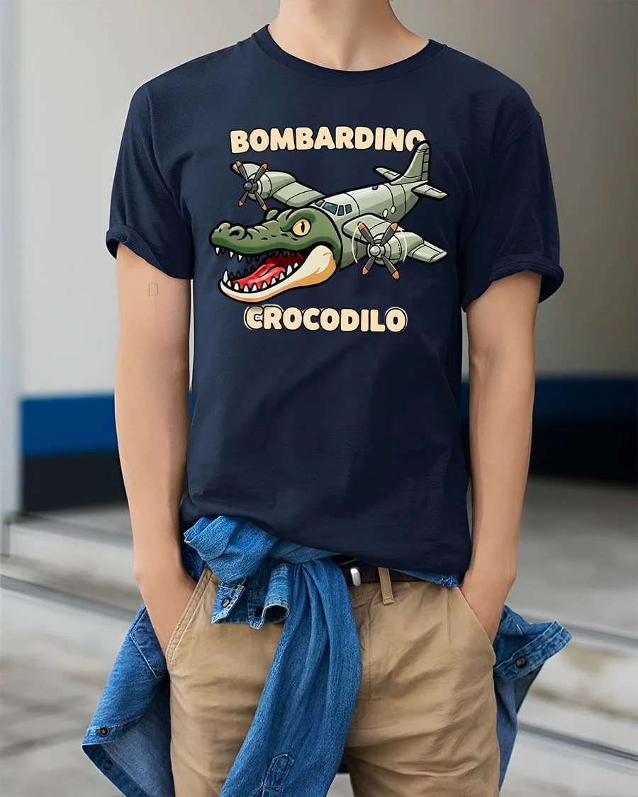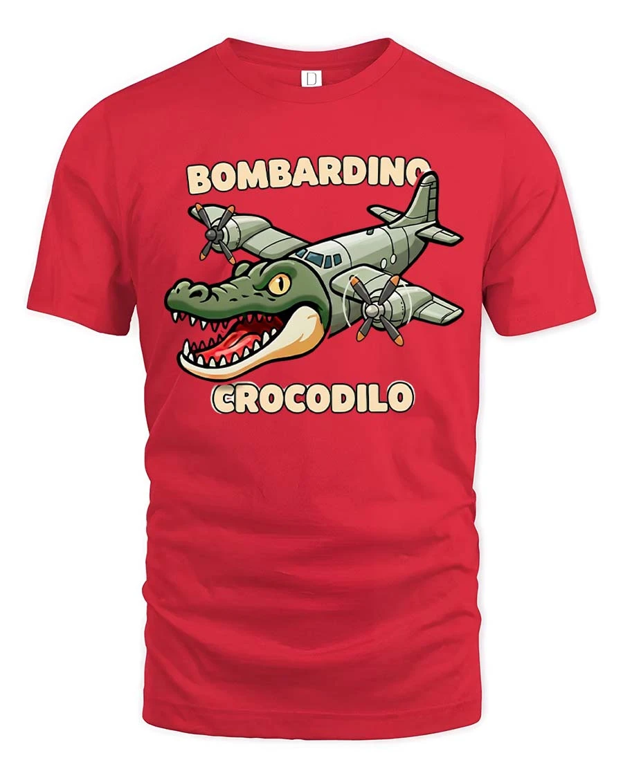 Bombardino Crocodilo Funny Plane Crocodile Graphic Tshirt delivers a hilarious and imaginative twist on classic cartoon style.