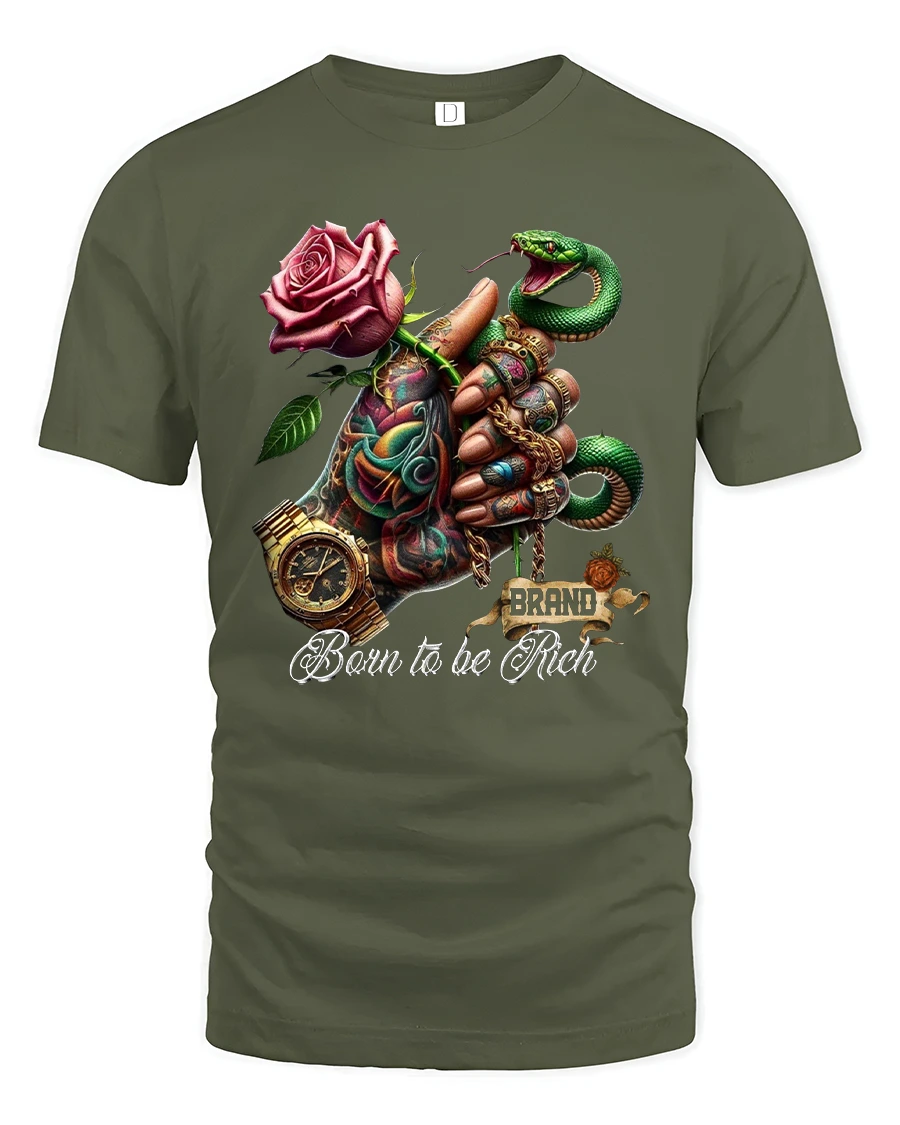 The Born To Be Rich Snake Rose Luxury Graphic T Shirt Power represents ambition confidence and unstoppable mindset.