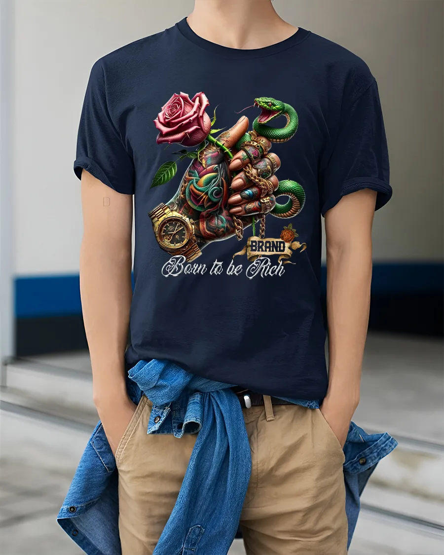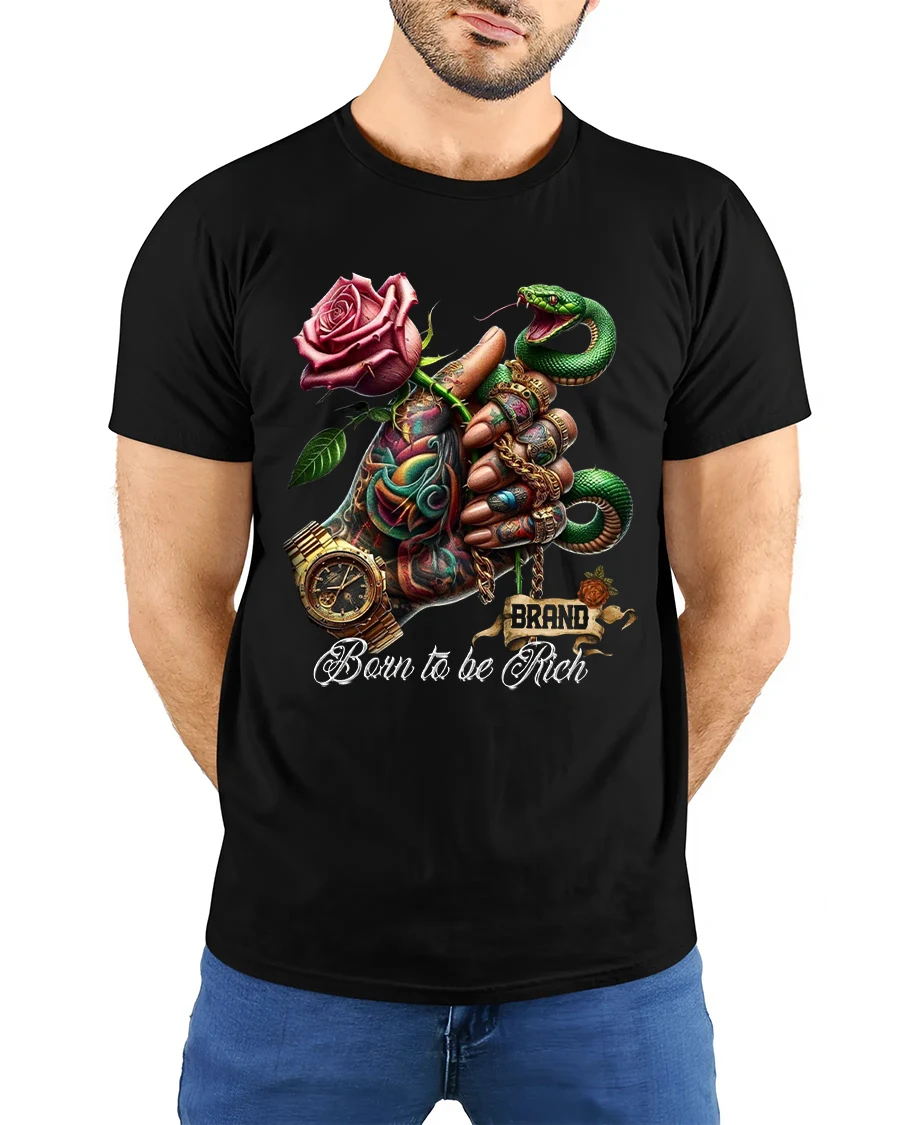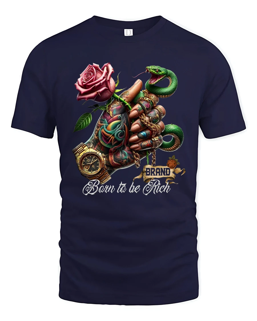 The Born To Be Rich Snake Rose Luxury Graphic T Shirt Power pairs effortlessly with streetwear and upscale casual looks.