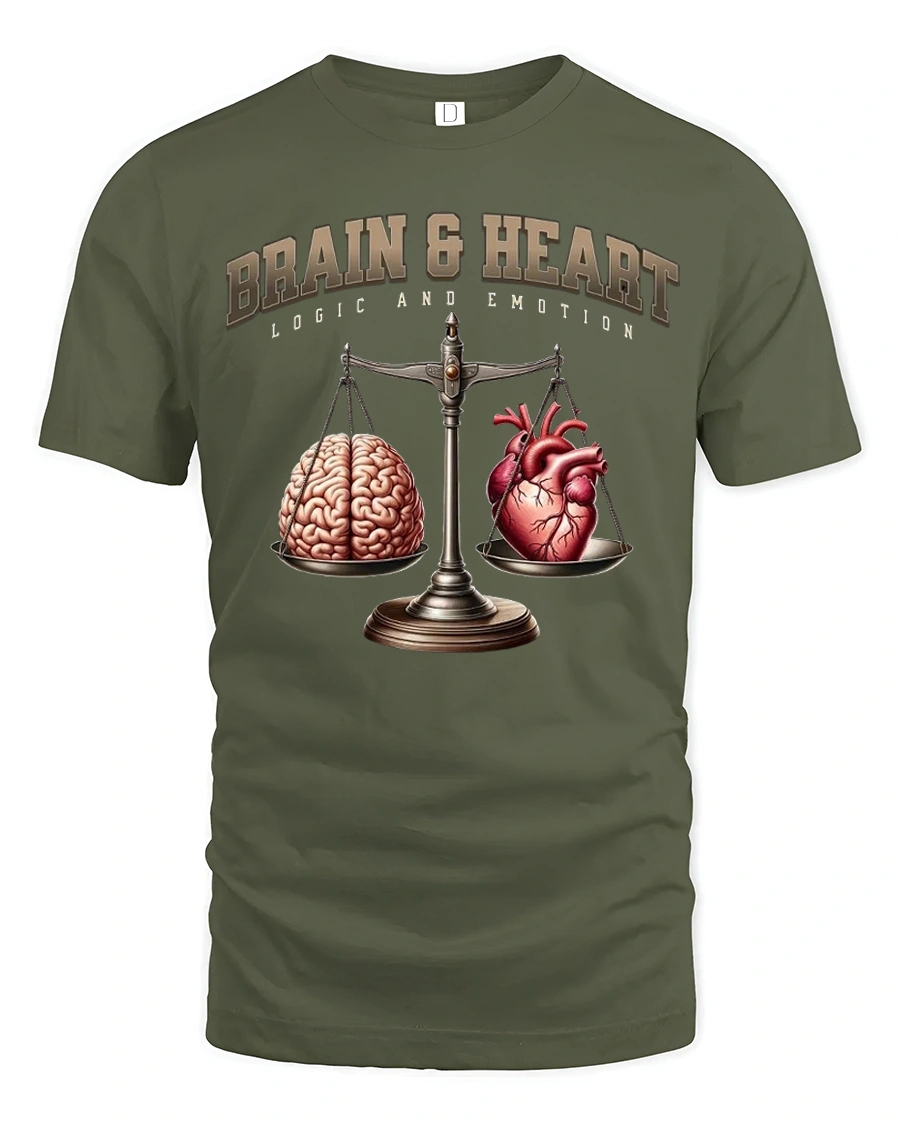 Find the perfect balance between logic and emotion with the Brain and Heart Balance Logic Emotion Graphic T-Shirt. Featuring a striking design of a brain and a heart on a scale, this tee is a clever way to show off your thoughtful side while still keeping it stylish and fun. It’s a great choice for anyone who enjoys motivational messages, psychology themes, or just unique graphic fashion.