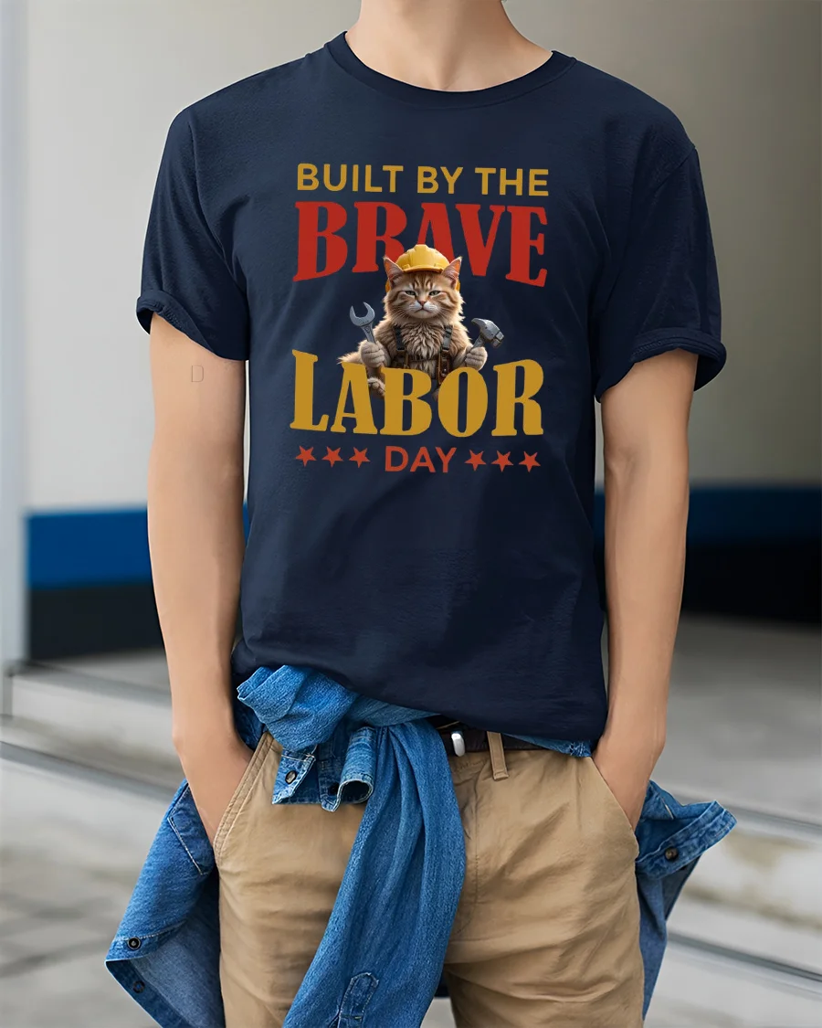 The Built By The Brave Labor Day Cat Graphic T-Shirt is more than just a holiday shirt—it’s a tribute to the dedication and bravery of everyday workers. Pair it with jeans, shorts, or casual pants for a laid-back, festive look. Wear it proudly this Labor Day and let your outfit reflect the true meaning of the holiday.
