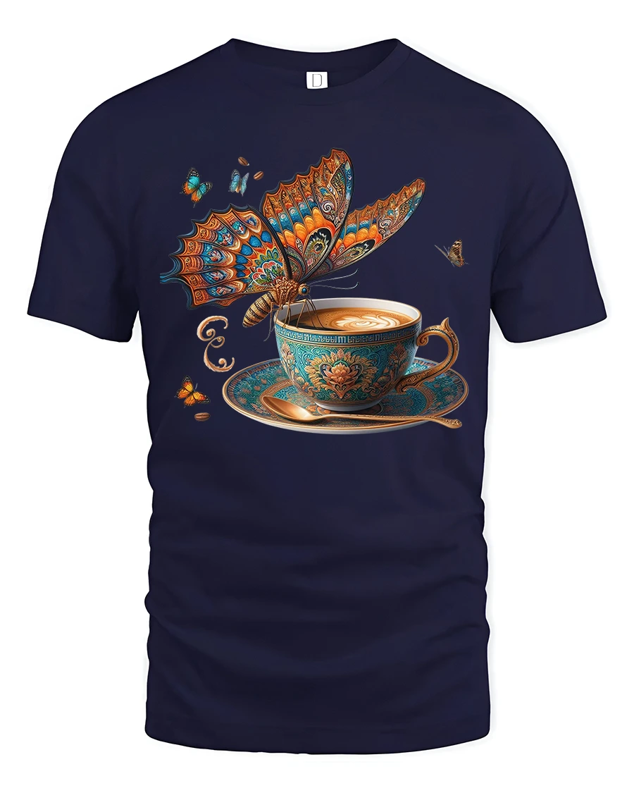 The Butterfly Coffee Art Graphic Tee blends elegance creativity and warmth into one visually striking design.