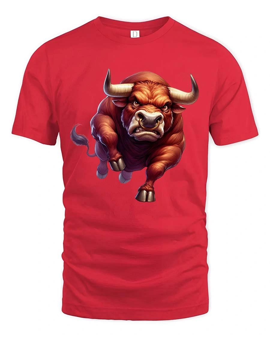 Charging Bull T-Shirt Angry Bull Power Animal Graphic Tee - red t-shirt on white background