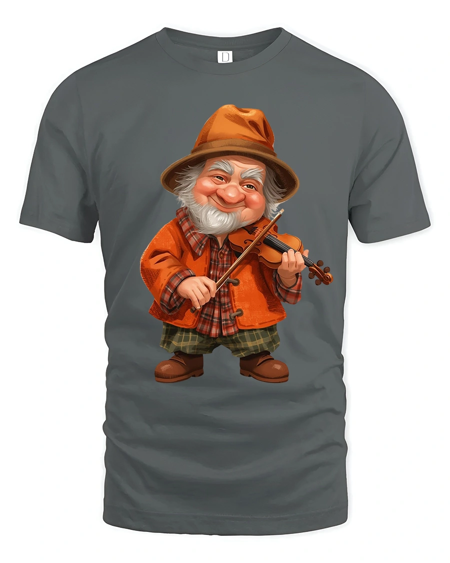 Cheerful Old Fiddler Cartoon Music Graphic Tshirt Cozy Folk Style captures warmth joy and timeless musical charm in a delightful illustrated design.