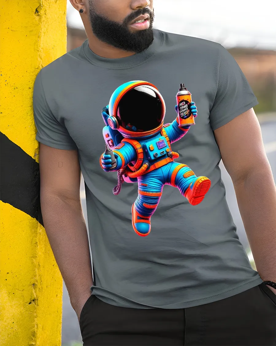 Wearing the Color Splash Astronaut Tee with Vibrant Space Art Graphic instantly adds personality and flair to any outfit. The design celebrates imagination, creativity, and cosmic adventure, making it an excellent choice for anyone who loves space themes, bold colors, or unique modern artwork. The astronaut’s playful pose and bright highlights create visual depth that makes the tee eye-catching from every angle.