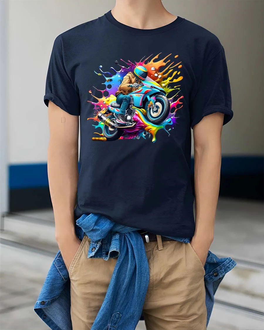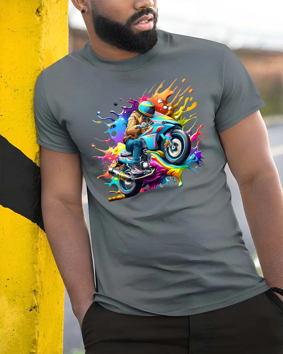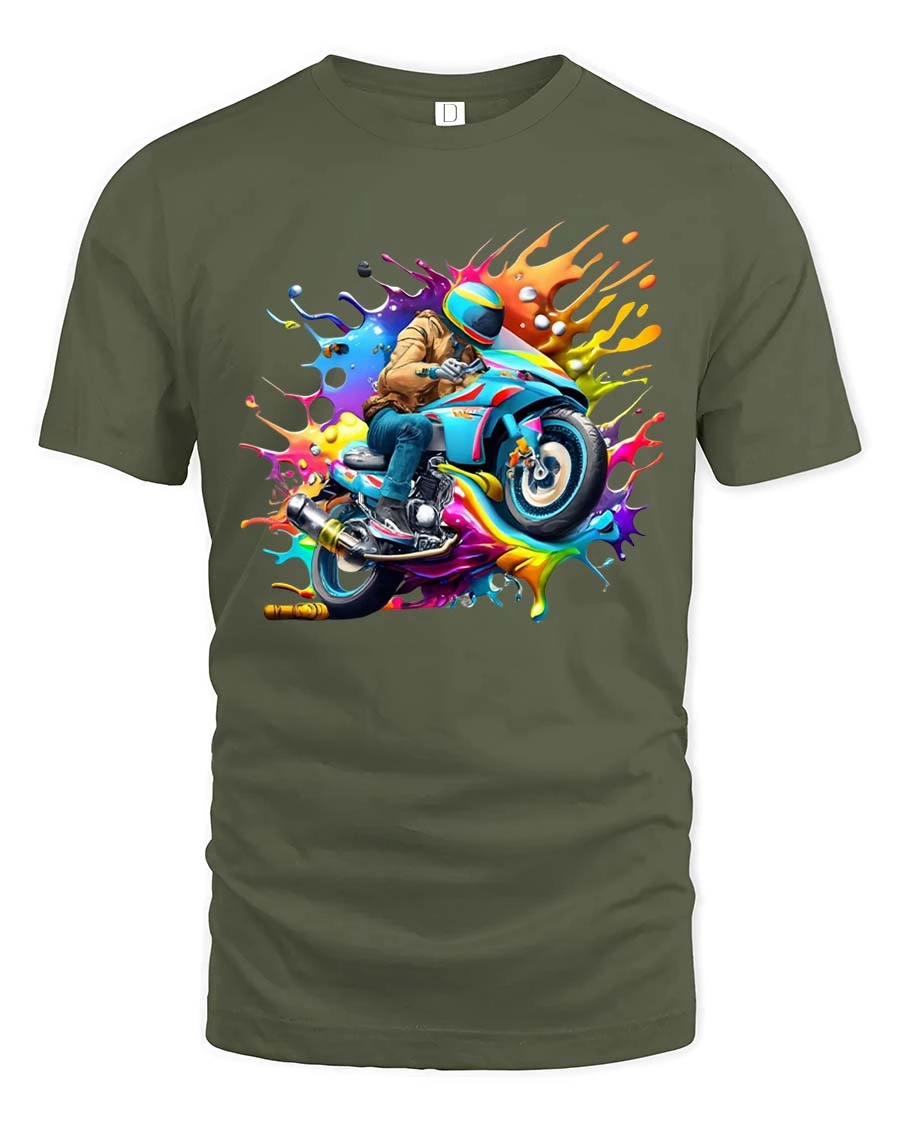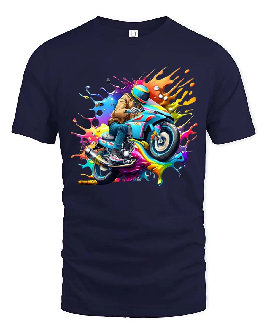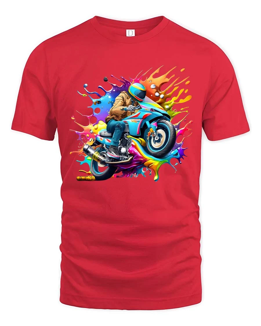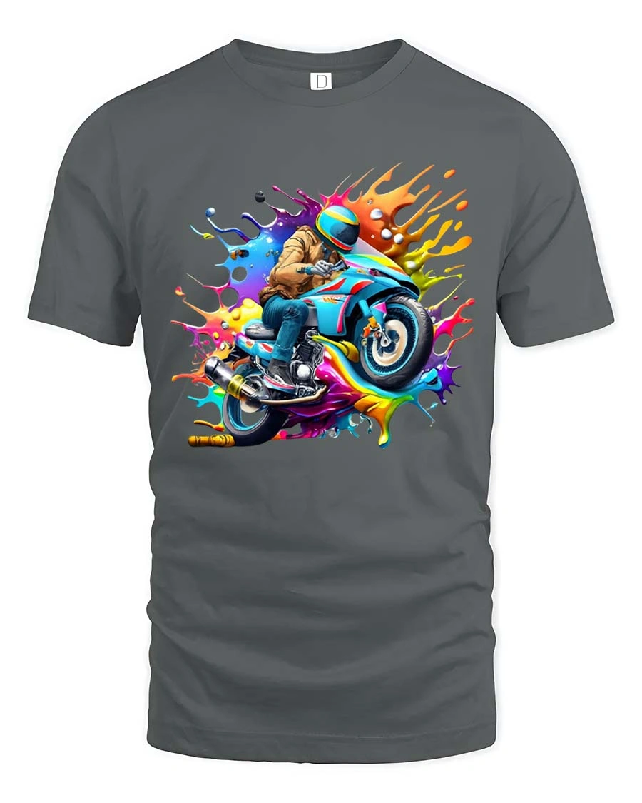 Color Splash Motorcycle T Shirt Rider Racing Graphic Art Tee delivers high energy style with a bold and dynamic design inspired by speed and motion.