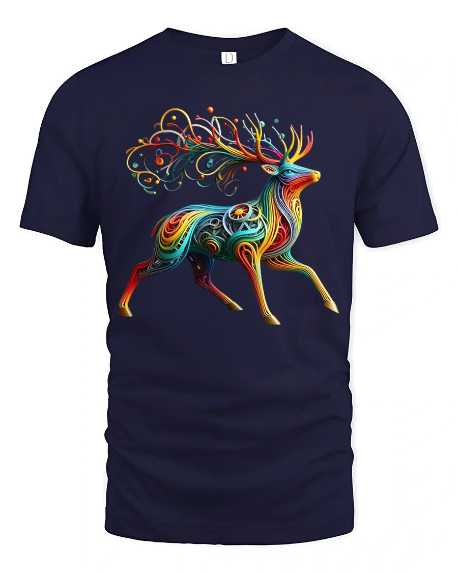 Colorful Abstract Deer Art Tshirt Vibrant Creative Flow presents a stunning interpretation of a majestic deer formed by flowing colorful lines and dynamic shapes.