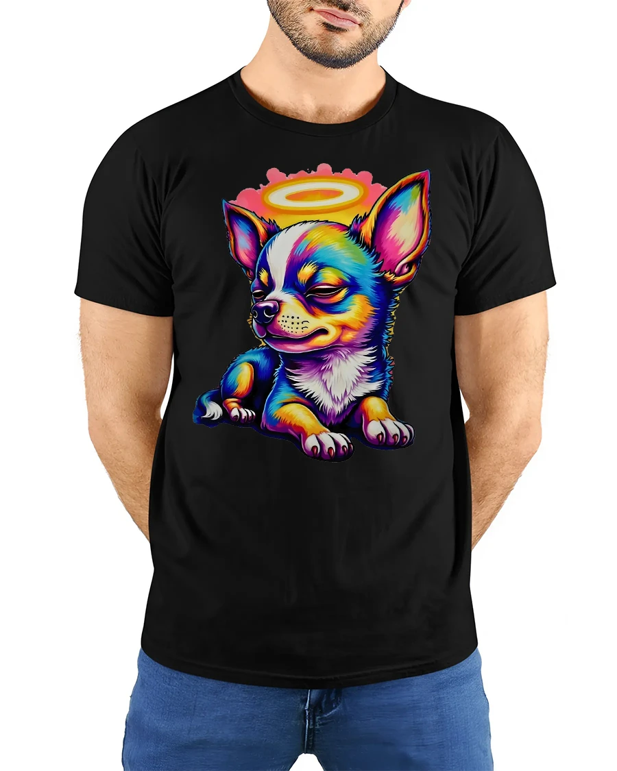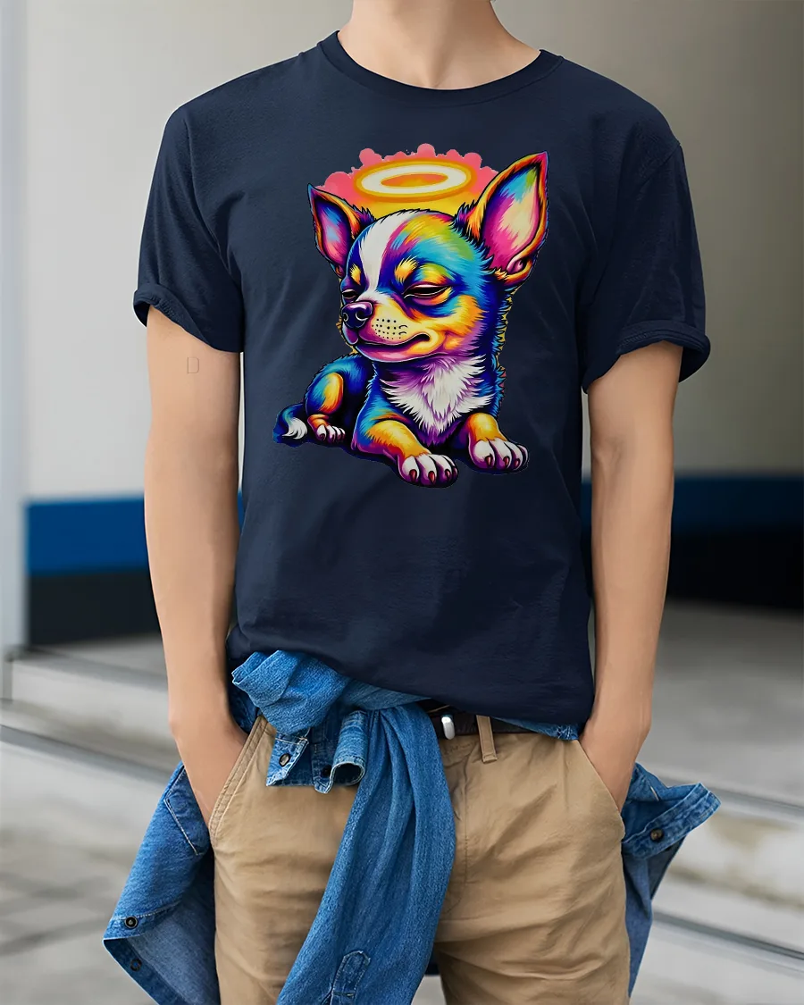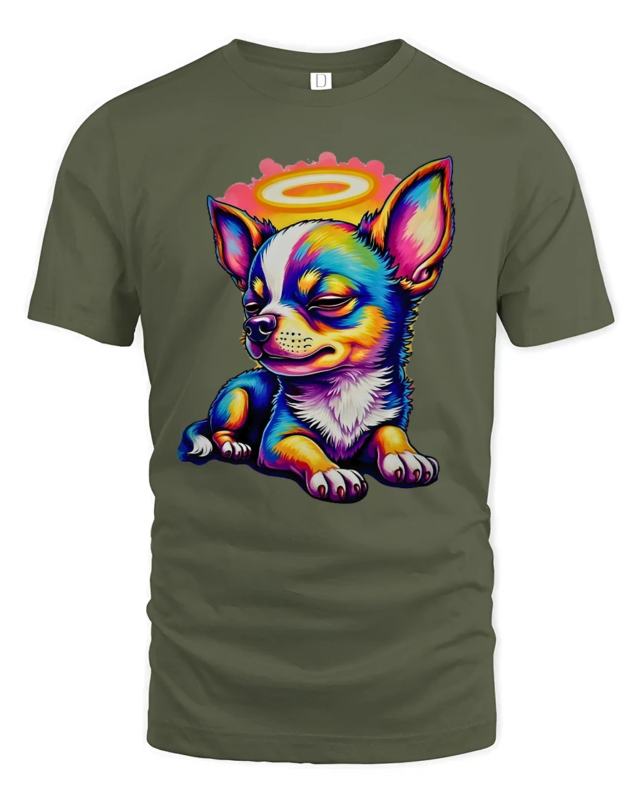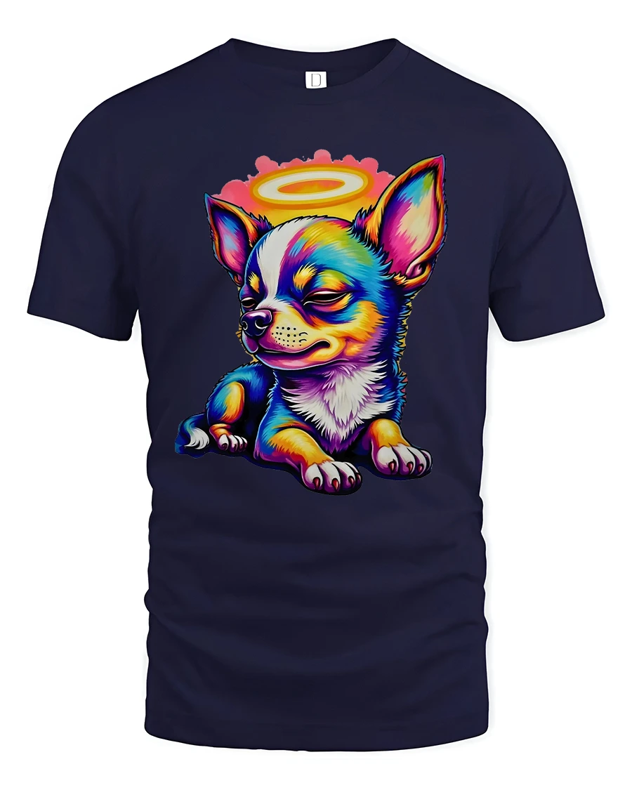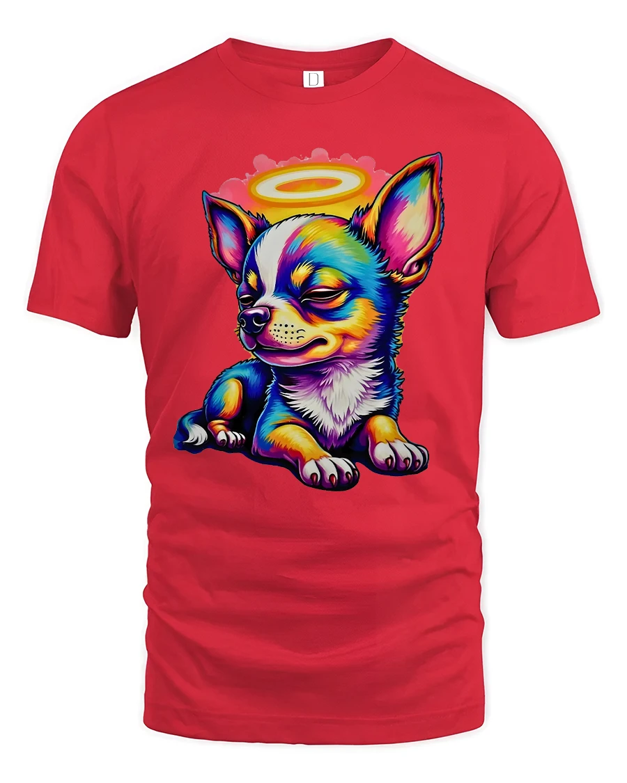 Colorful Angel Chihuahua Cartoon Tshirt Cute Halo Puppy Art delivers an irresistibly adorable design filled with charm and personality.