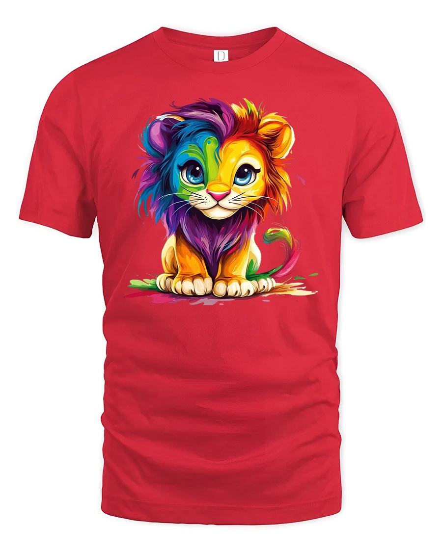 Colorful Baby Lion Art T-Shirt - red t-shirt on white background