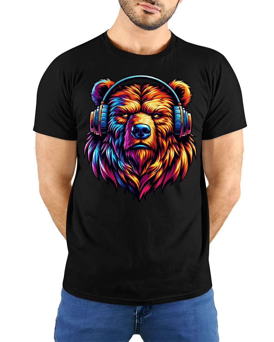 Colorful Bear Headphones Tee for Music Lovers Graphic Tshirt is the perfect choice for anyone who loves bold designs, vivid colors, and high-energy style. Featuring a fierce bear wearing futuristic headphones, this tshirt delivers a vibrant, eye-catching look that stands out in any crowd. The neon fur effect and sharp color transitions create a modern streetwear vibe that appeals to music enthusiasts, festival goers, and fans of unique graphic tees.
