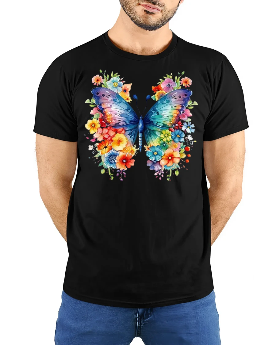The Colorful Butterfly Floral Art Graphic T Shirt blends comfort creativity and natural beauty into one graceful statement piece.
