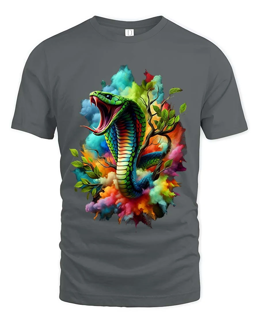 Colorful Cobra Snake Splash Art Bold Graphic T Shirt delivers a powerful and energetic visual that instantly grabs attention.