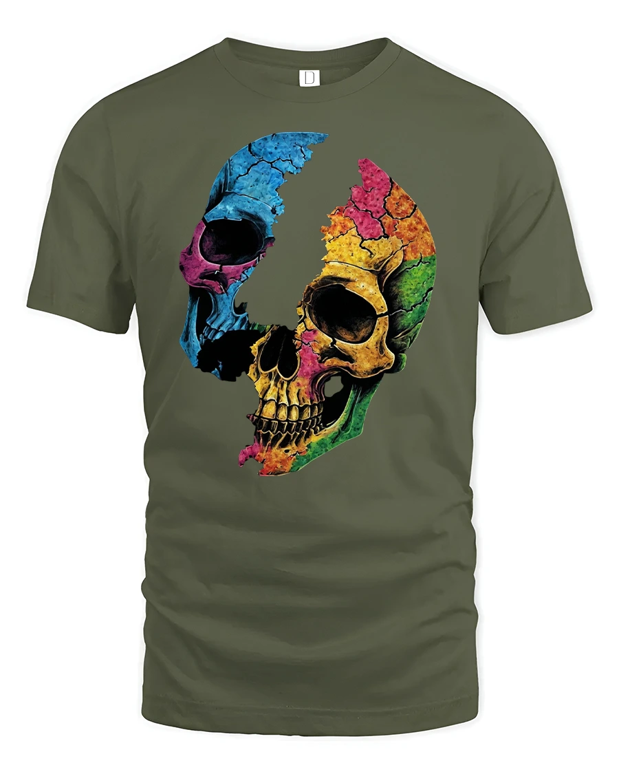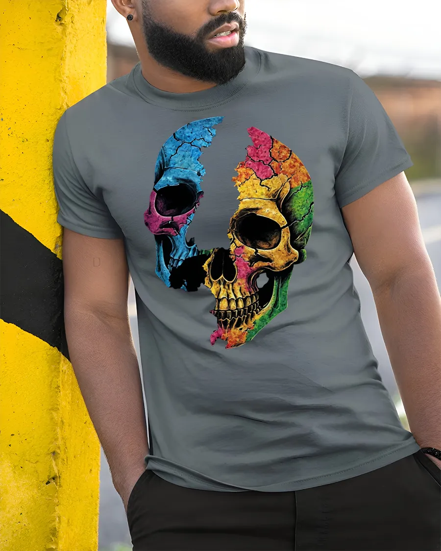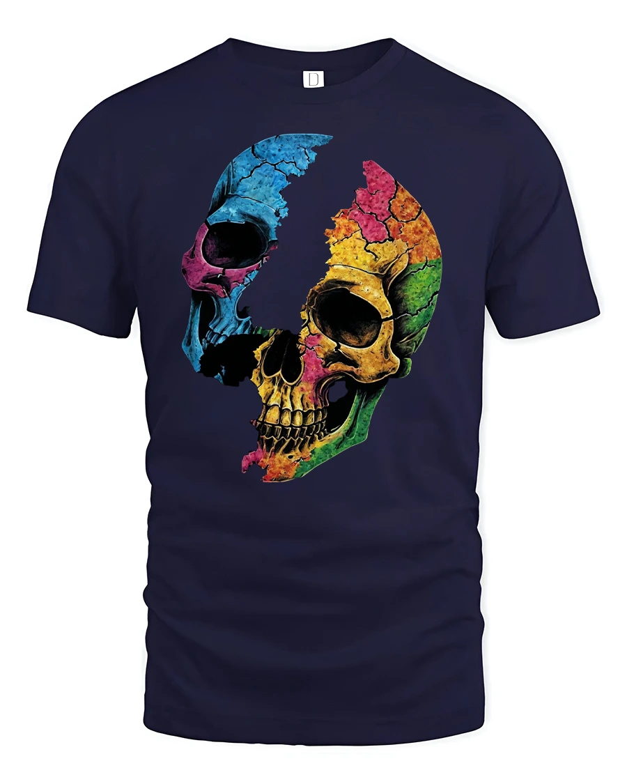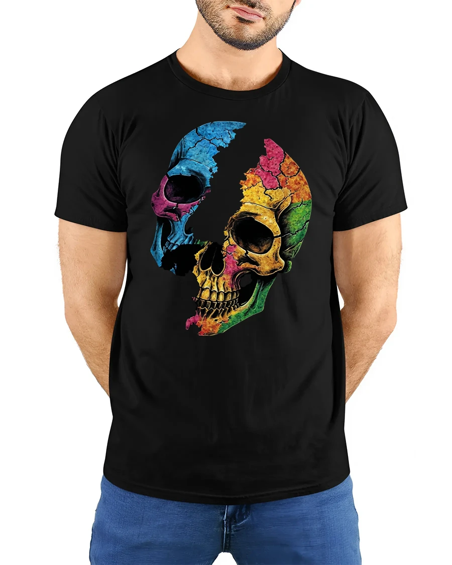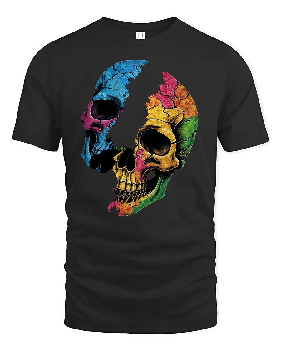 Colorful Cracked Skull Graphic T-Shirt Art Style blends dark edge with creative color to deliver a look that stands out.