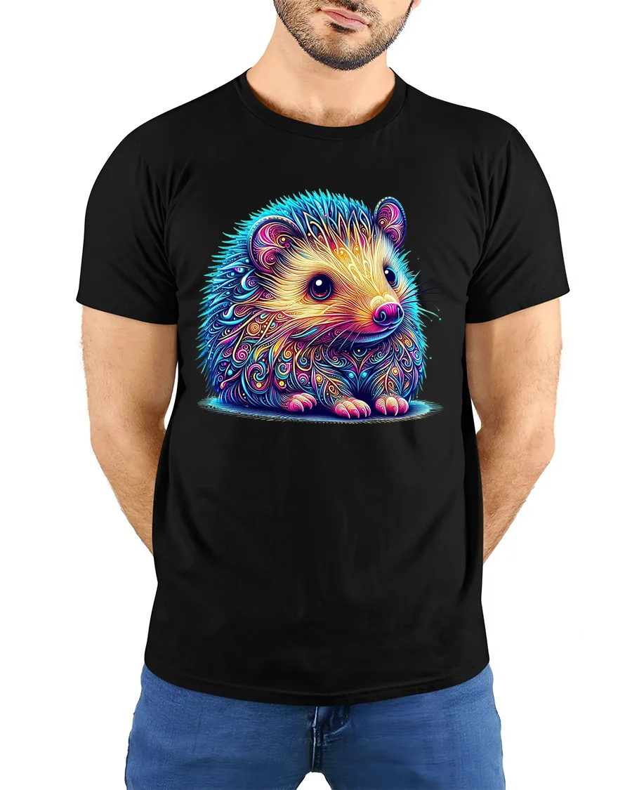 The Colorful Cute Hedgehog Illustration Art Graphic T Shirt Tee showcases a stunning blend of creativity and charm through a beautifully detailed animal design.