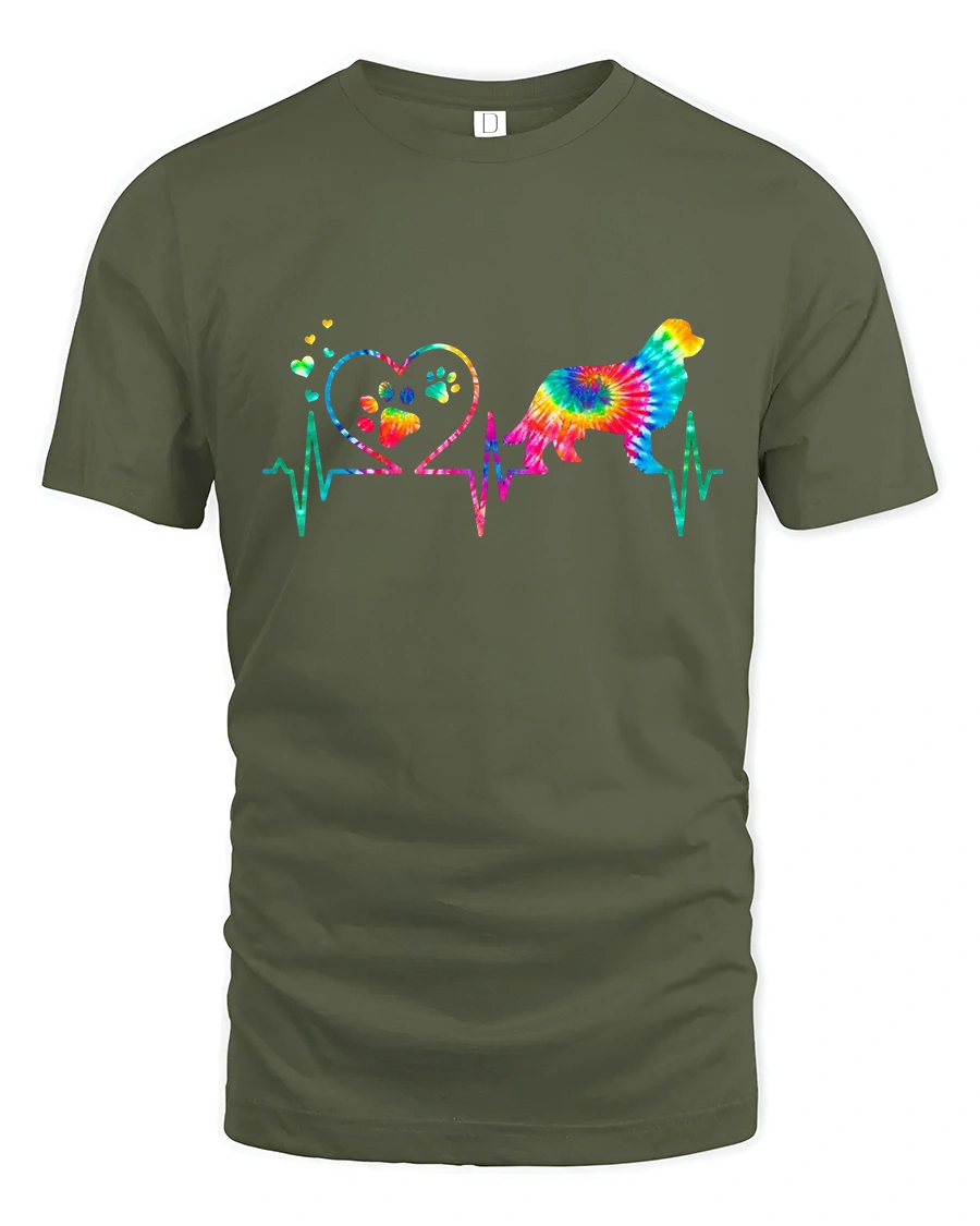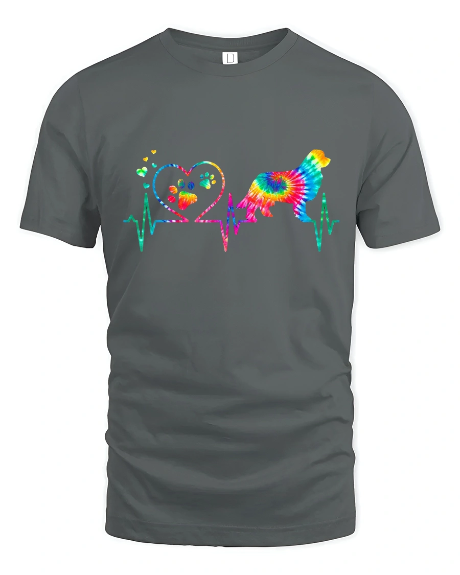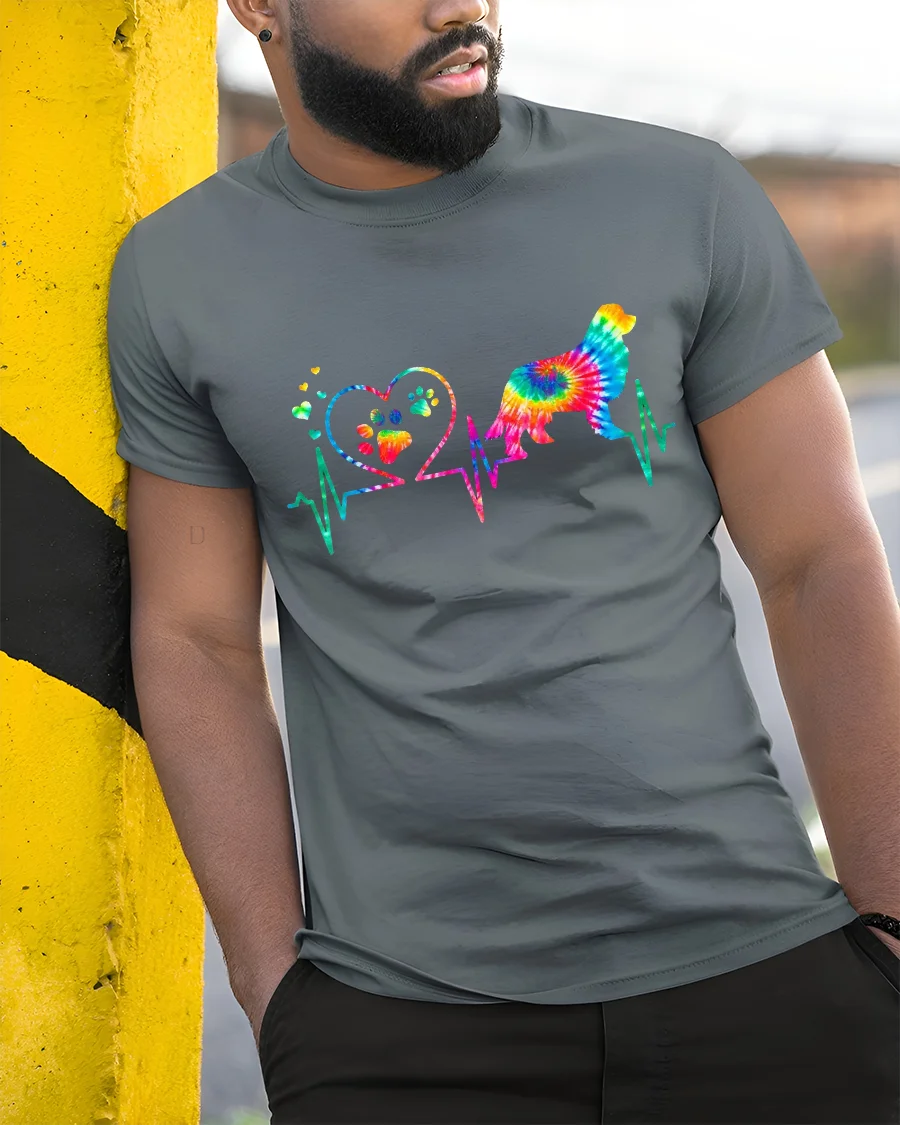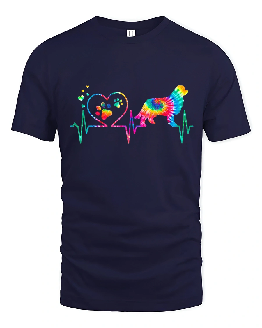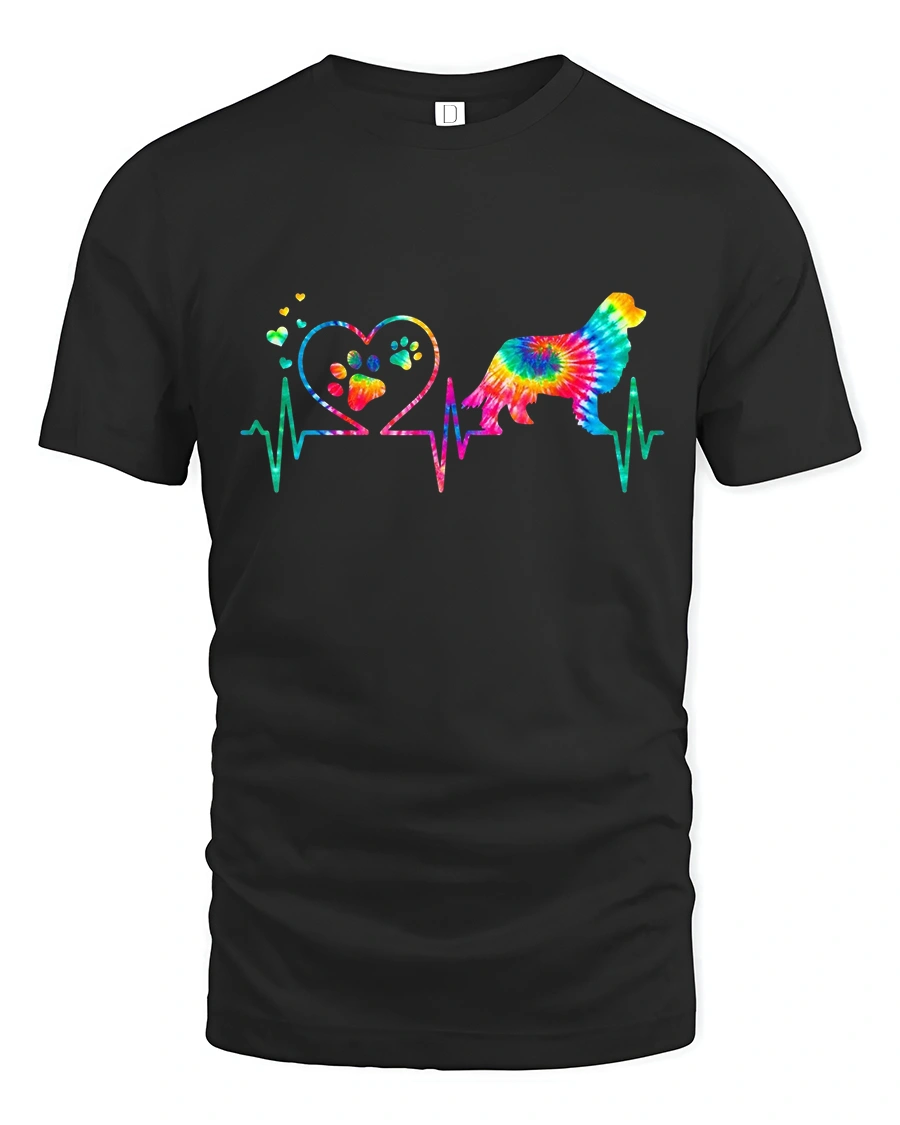 The Colorful Dog Heartbeat Love Paw Print Tie Dye Graphic Tee celebrates the deep bond between people and their dogs.