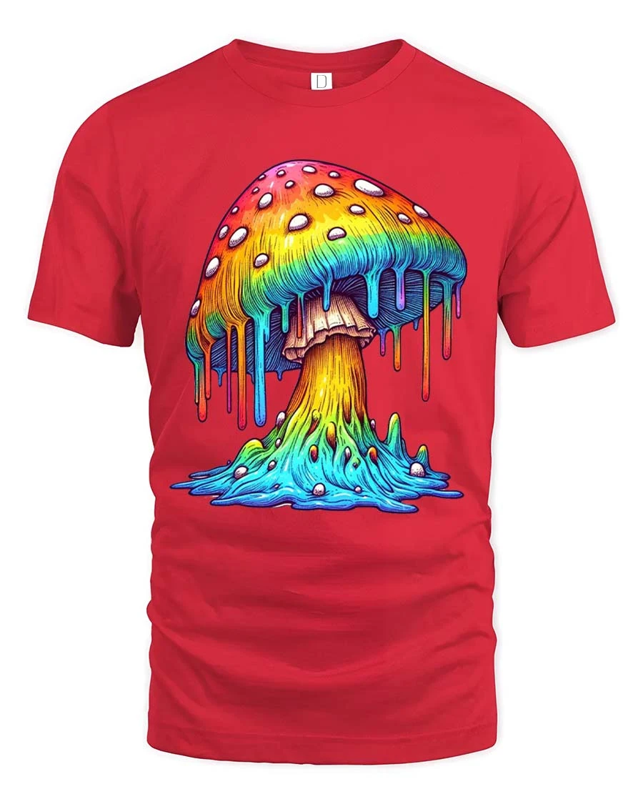 Colorful Dripping Mushroom Graphic T Shirt Psychedelic Art - red t-shirt on white background