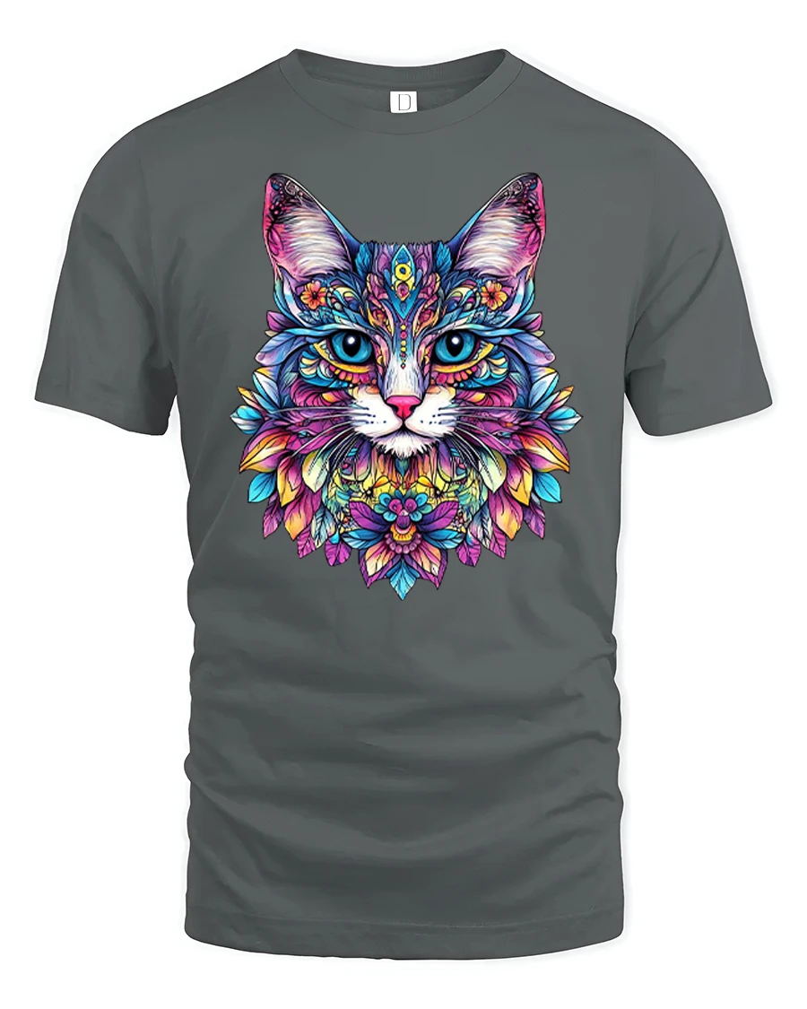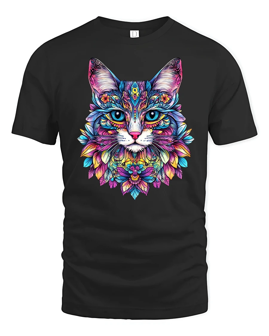 Colorful Mandala Cat Art Psychedelic Floral Graphic Tee is perfect for anyone who loves cats art and vibrant design.